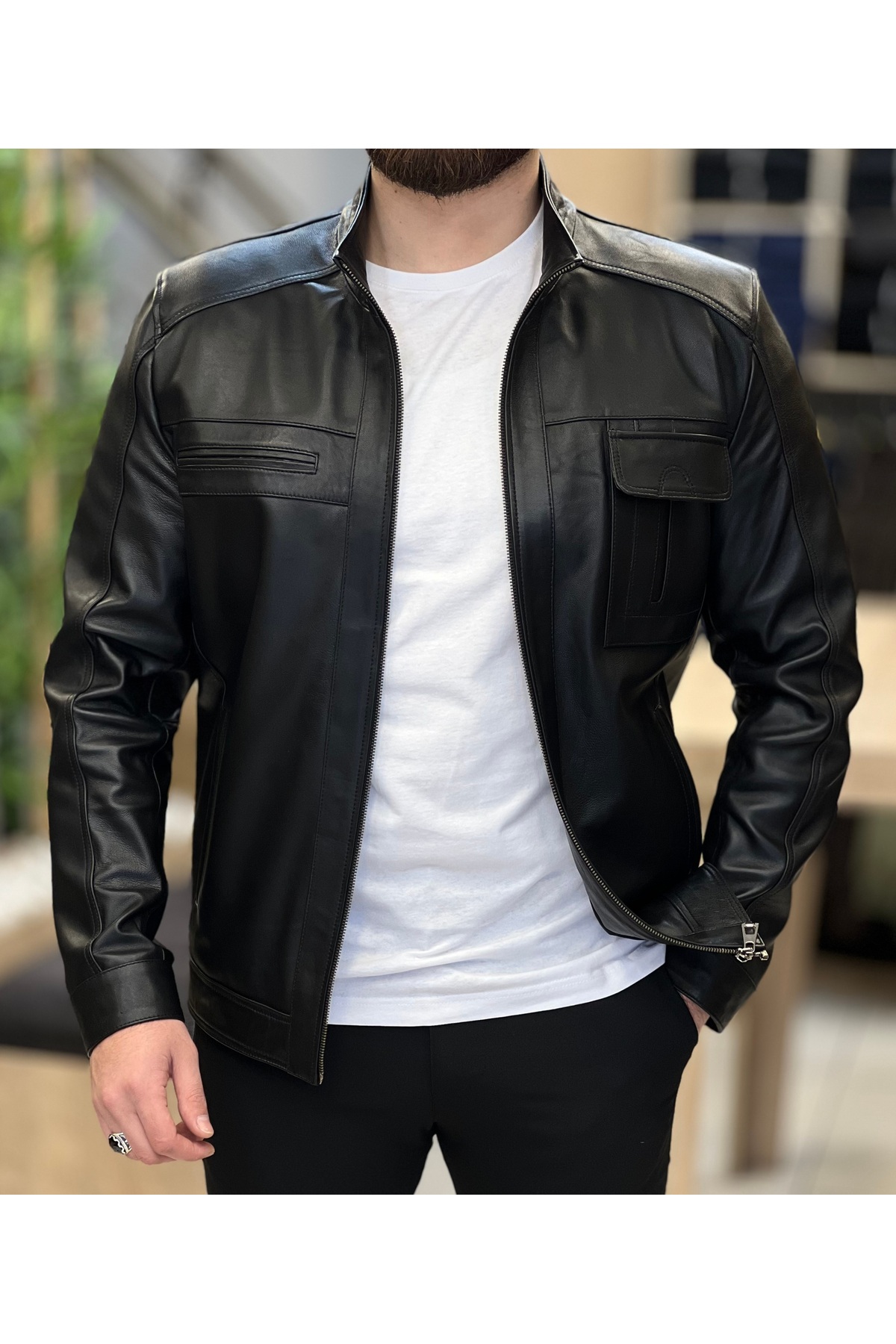 ساوارا کاپشن چرمی مردانه مشکی (100% پوست بره اصل) سایز معمولی