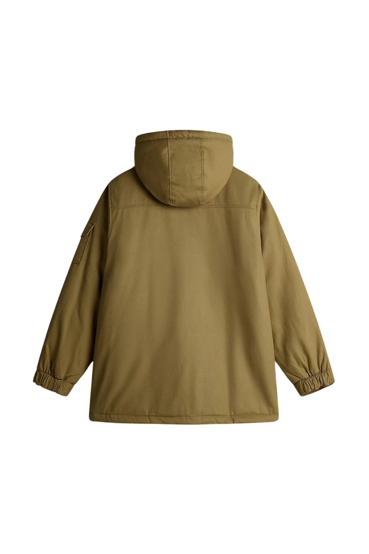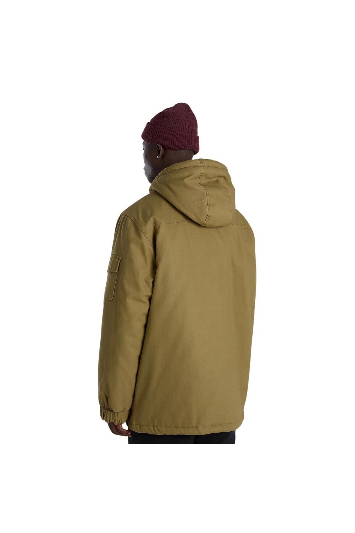 ۱۰۰٪ پنبه ویژگی‌ها: پارچه پنبه‌ای برس خورده، آستر پوپلین و پد ضخیم، زیپ مخفی در جلو، طناب تونلی با حلقه فلزی روی کلاه، جیب‌های دستی دکمه‌دار و زیپ‌دار، جیب وصله‌ای با لبه درپوش روی بازوی چپ، سرآستین‌های قابل تنظیم، برچسب بافته شده در لبه پایین سمت چپ
