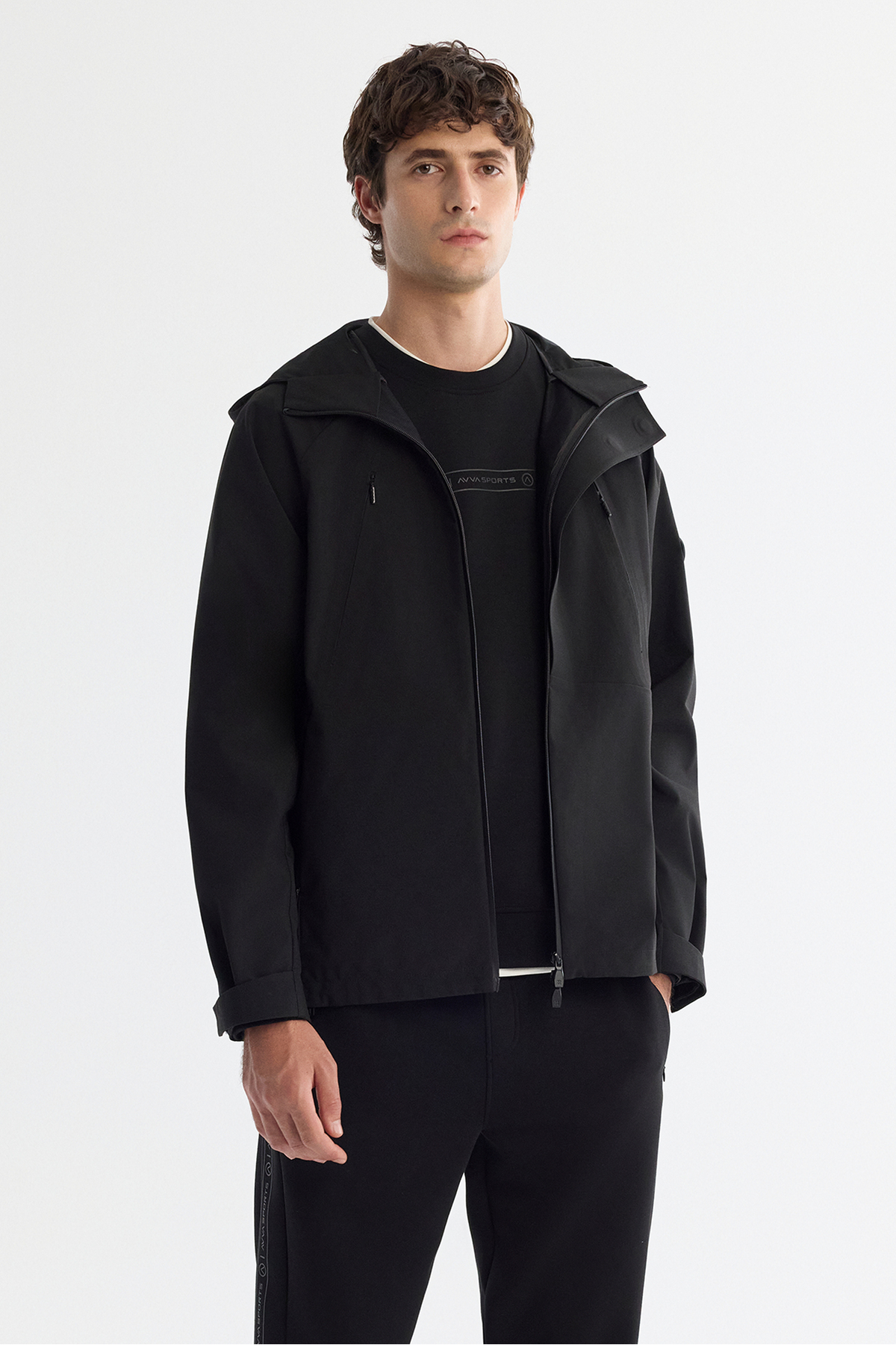 آوا کاپشن مردانه کلاه دار مشکی ضد آب، ضد باد، با بسته شدن آهنربایی، مناسب فصل، مناسب برای راحتی A42Y6083