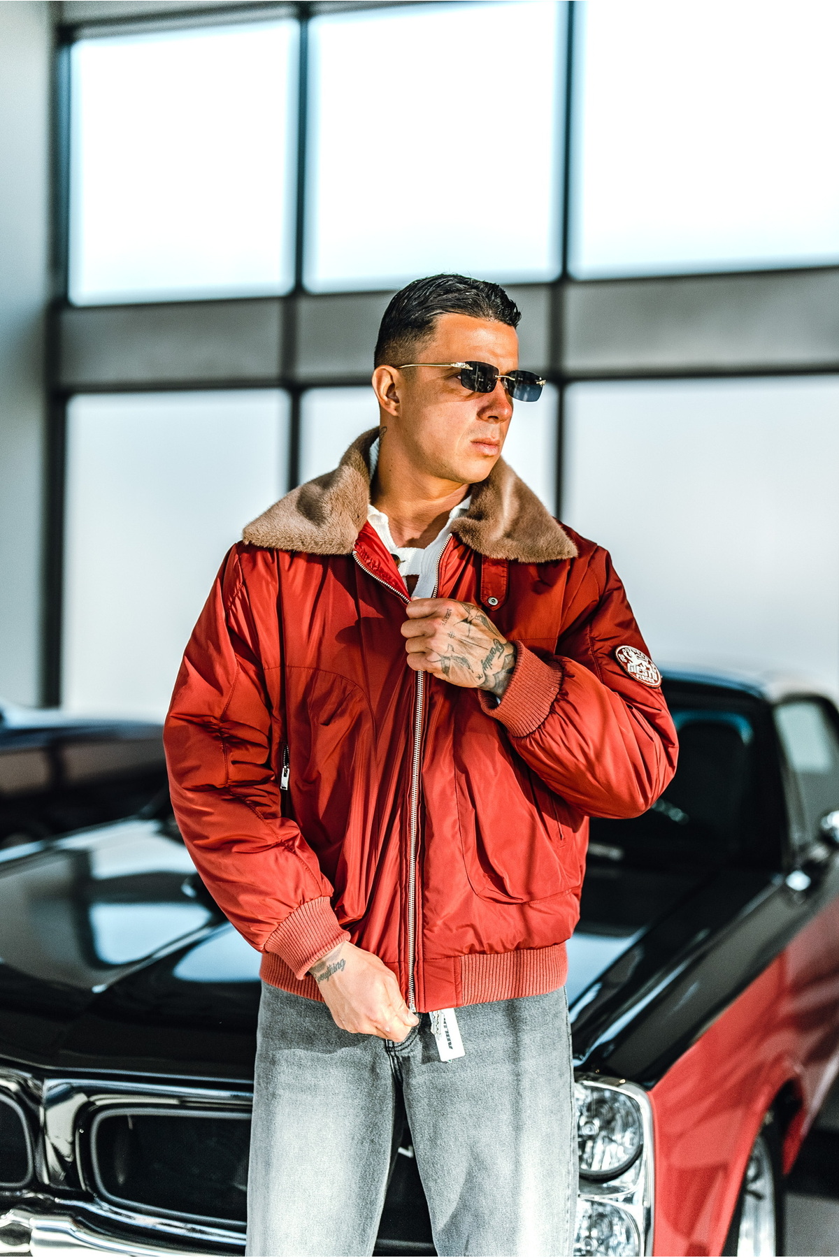 بلوک انلاین کاپشن جیبدار زیپدار یقه گشاد مردانه قرمز