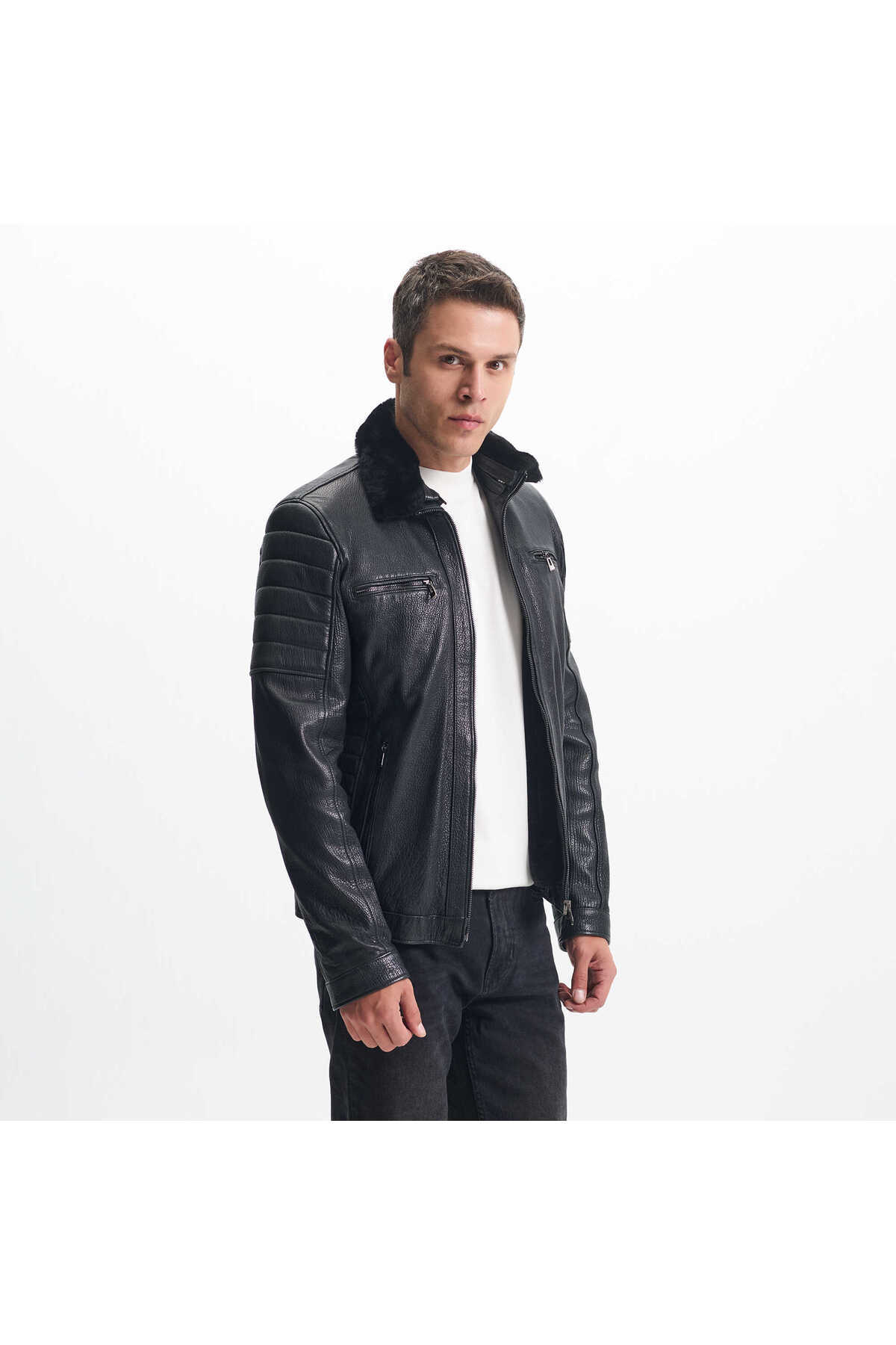 ترگان کاپشن چرم مردانه مشکی اصل – E23KDM310471-Q4O