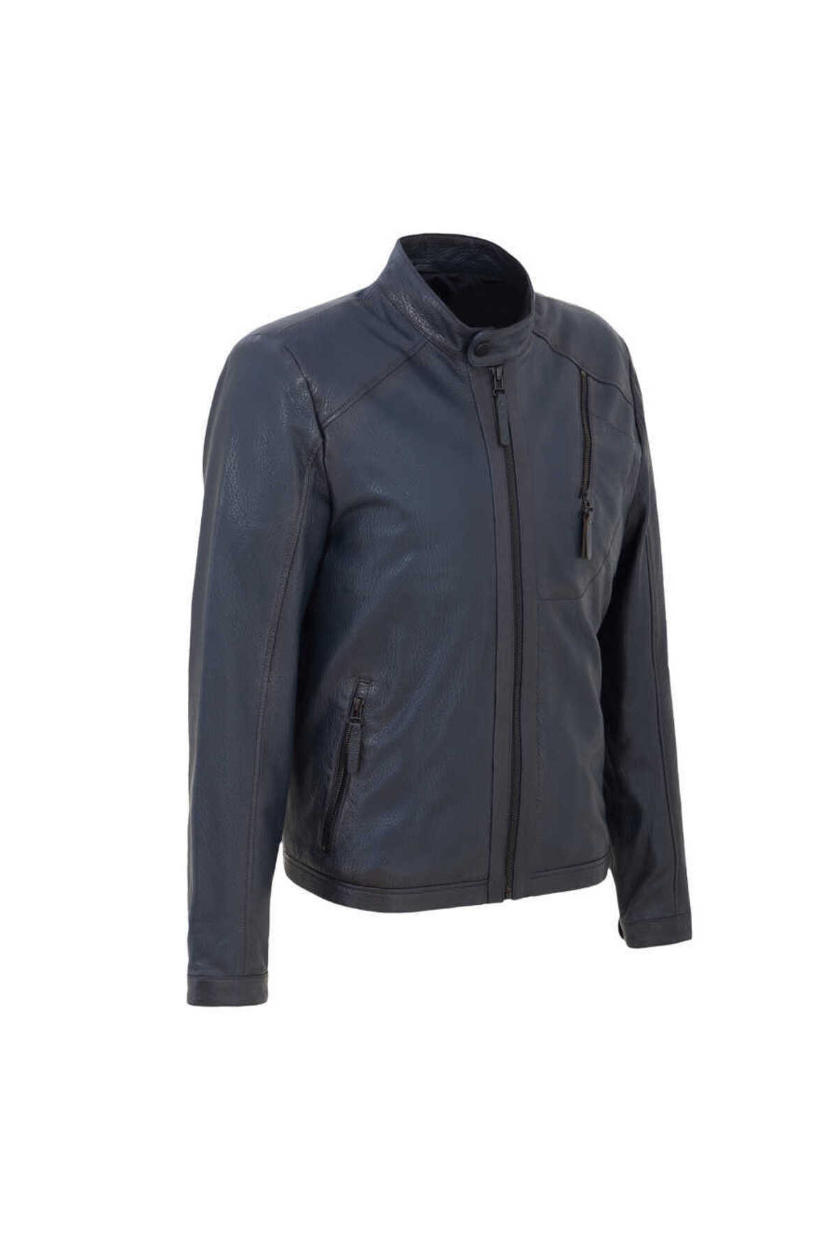 ترگان کاپشن چرم مردانه سرمهای – E22BDM310382-Q4P