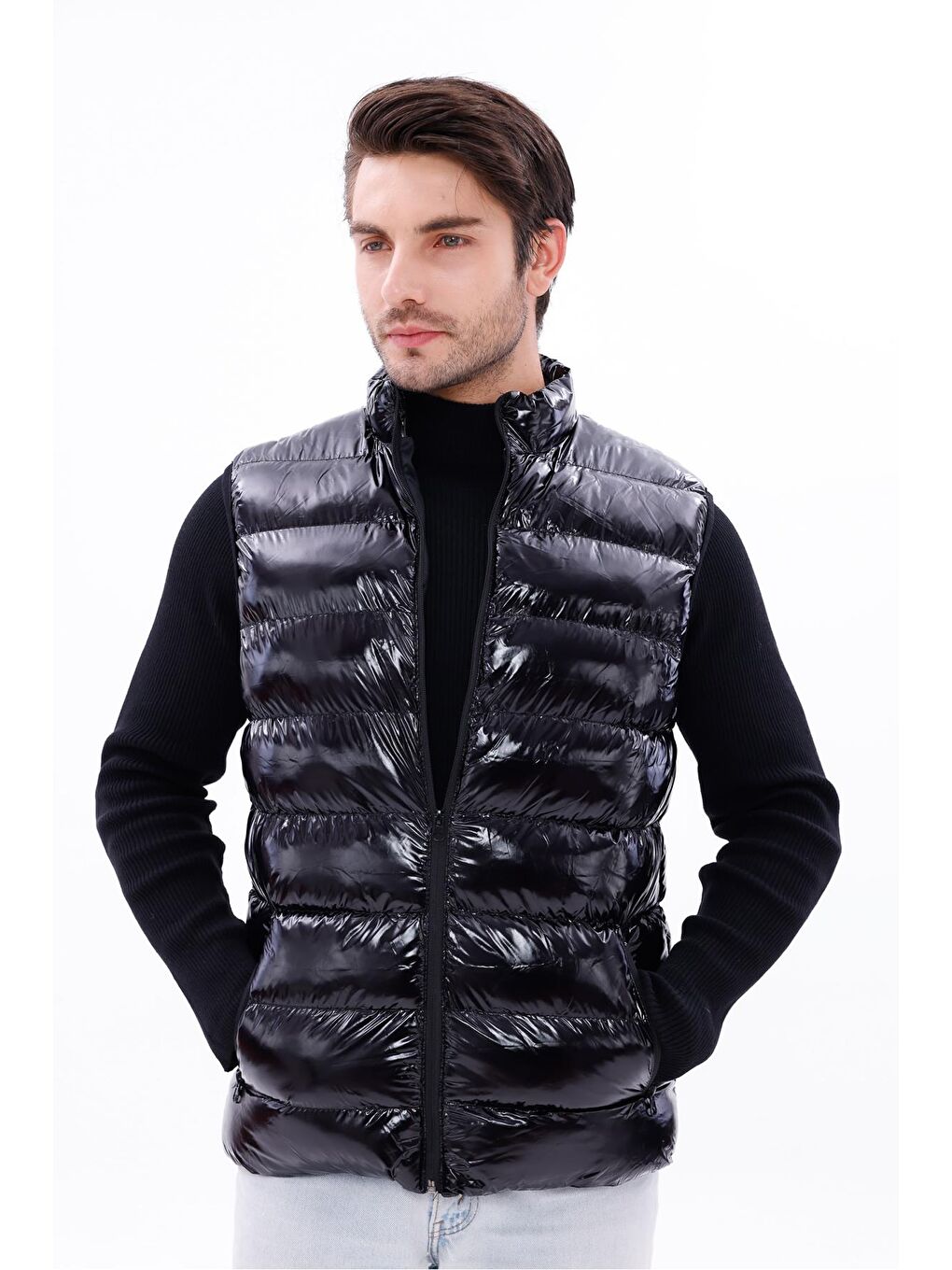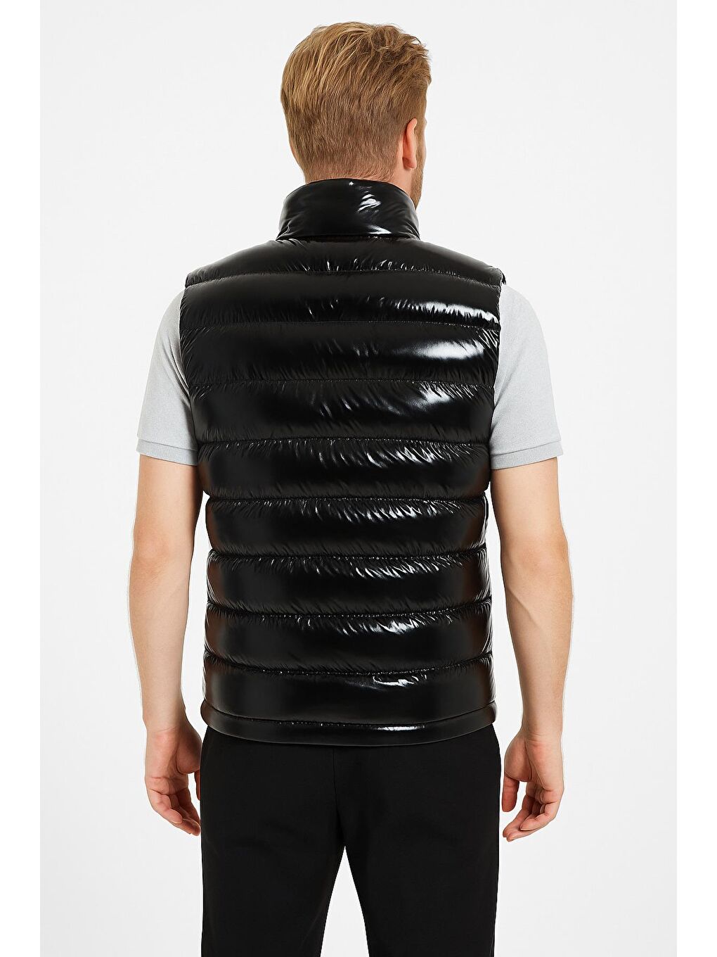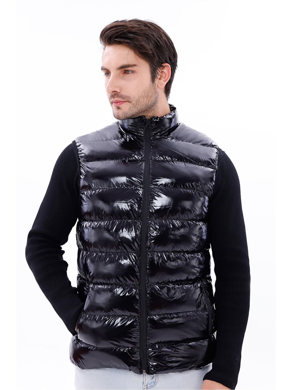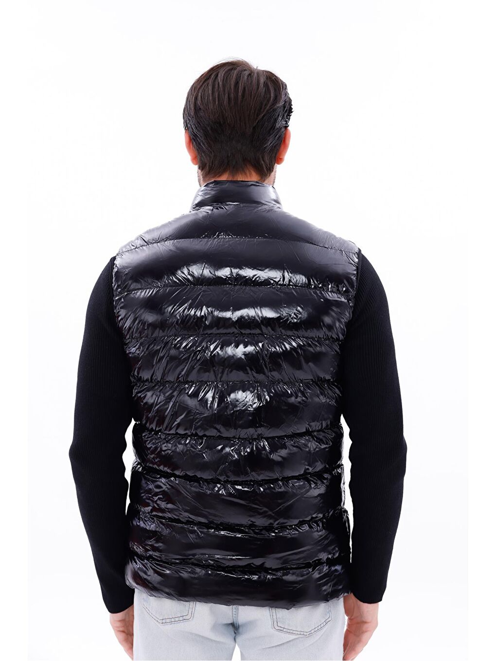 جلیقه پفی پارچهای براق مشکی مردانه