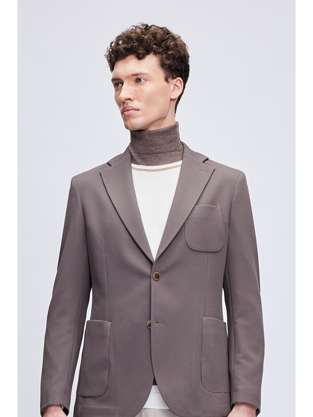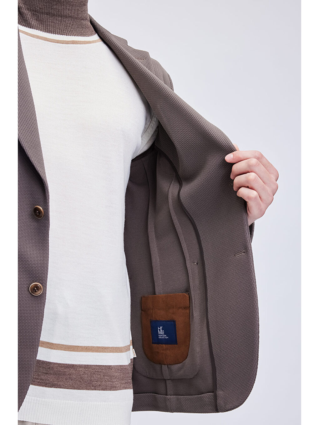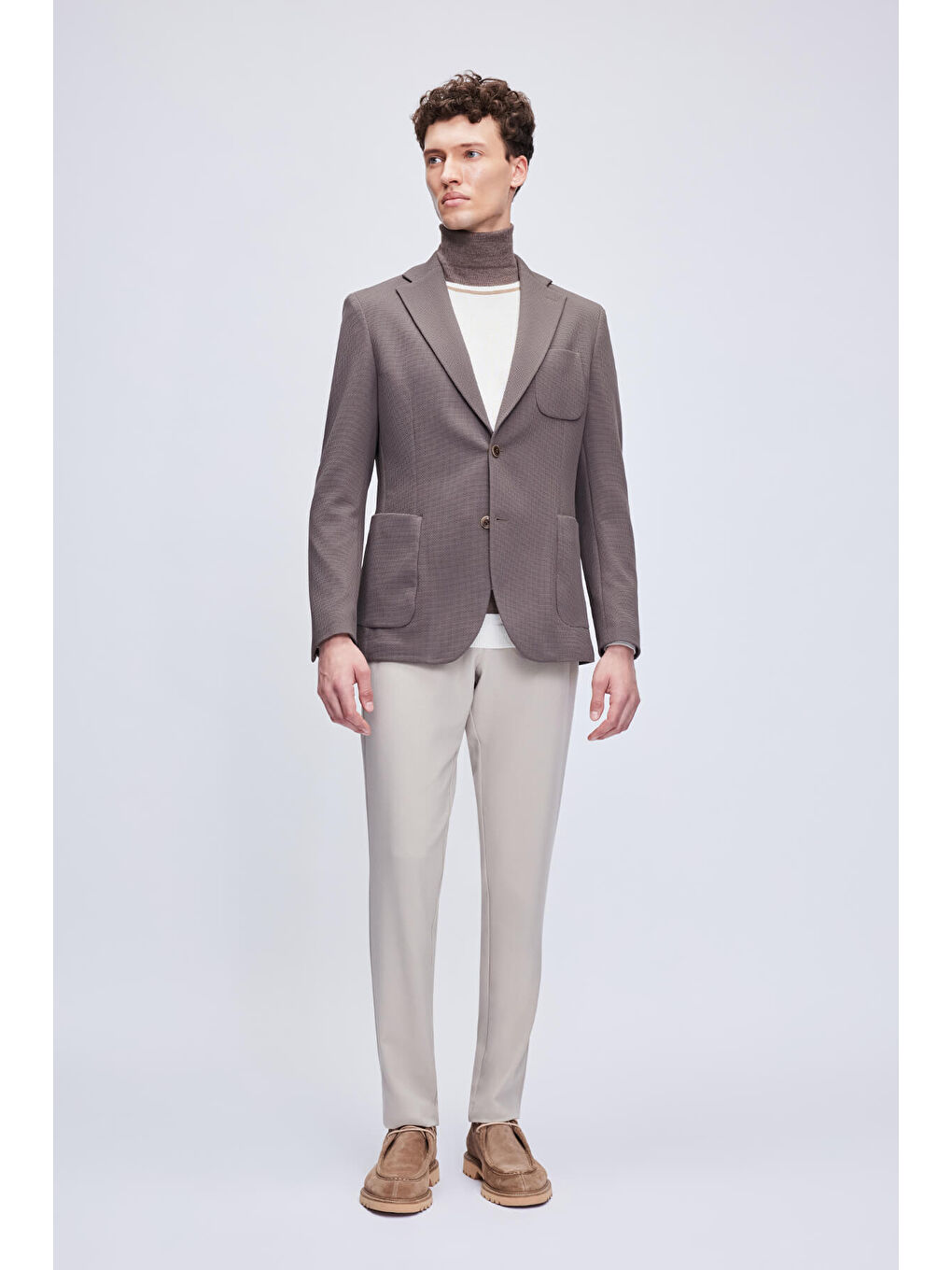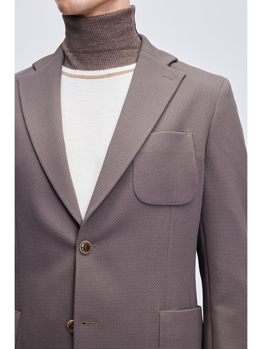 ژاکت کلاسیک یقه تک طرح دار با طرح راحتی قهوه ای