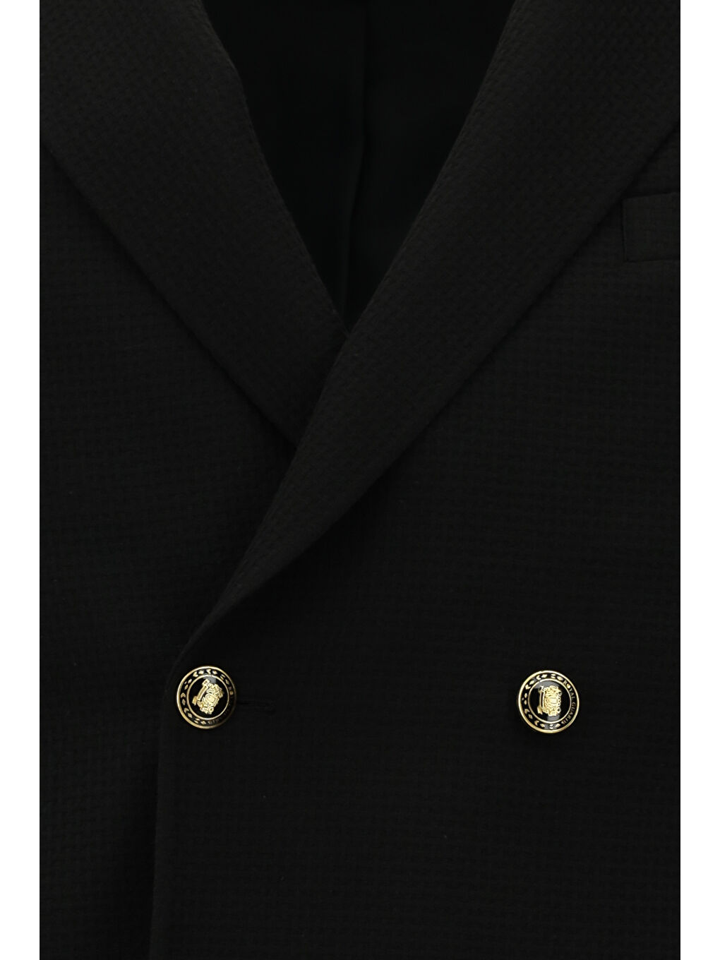 ژاکت دو سینه با طرح باریک باریک مشکی