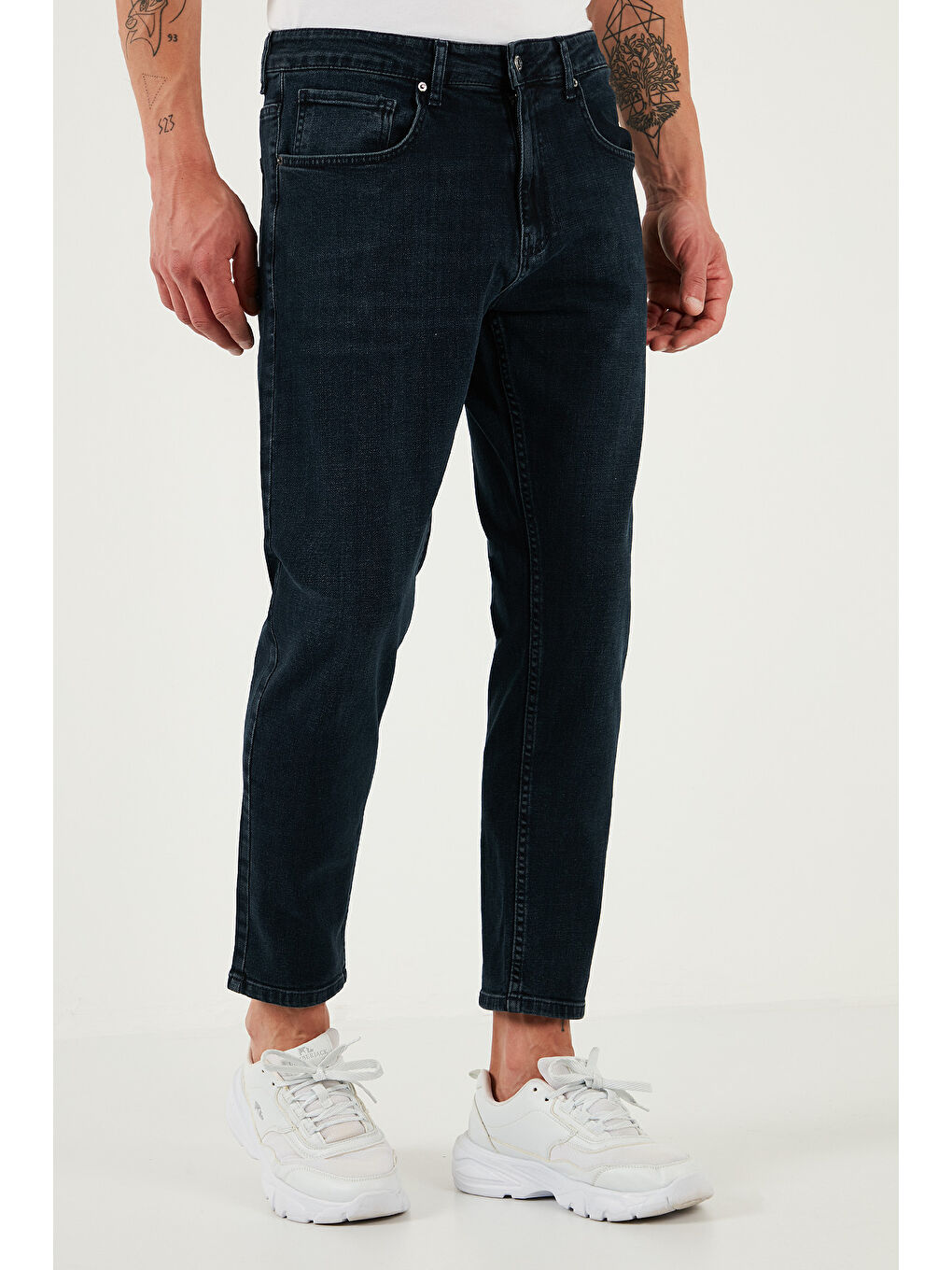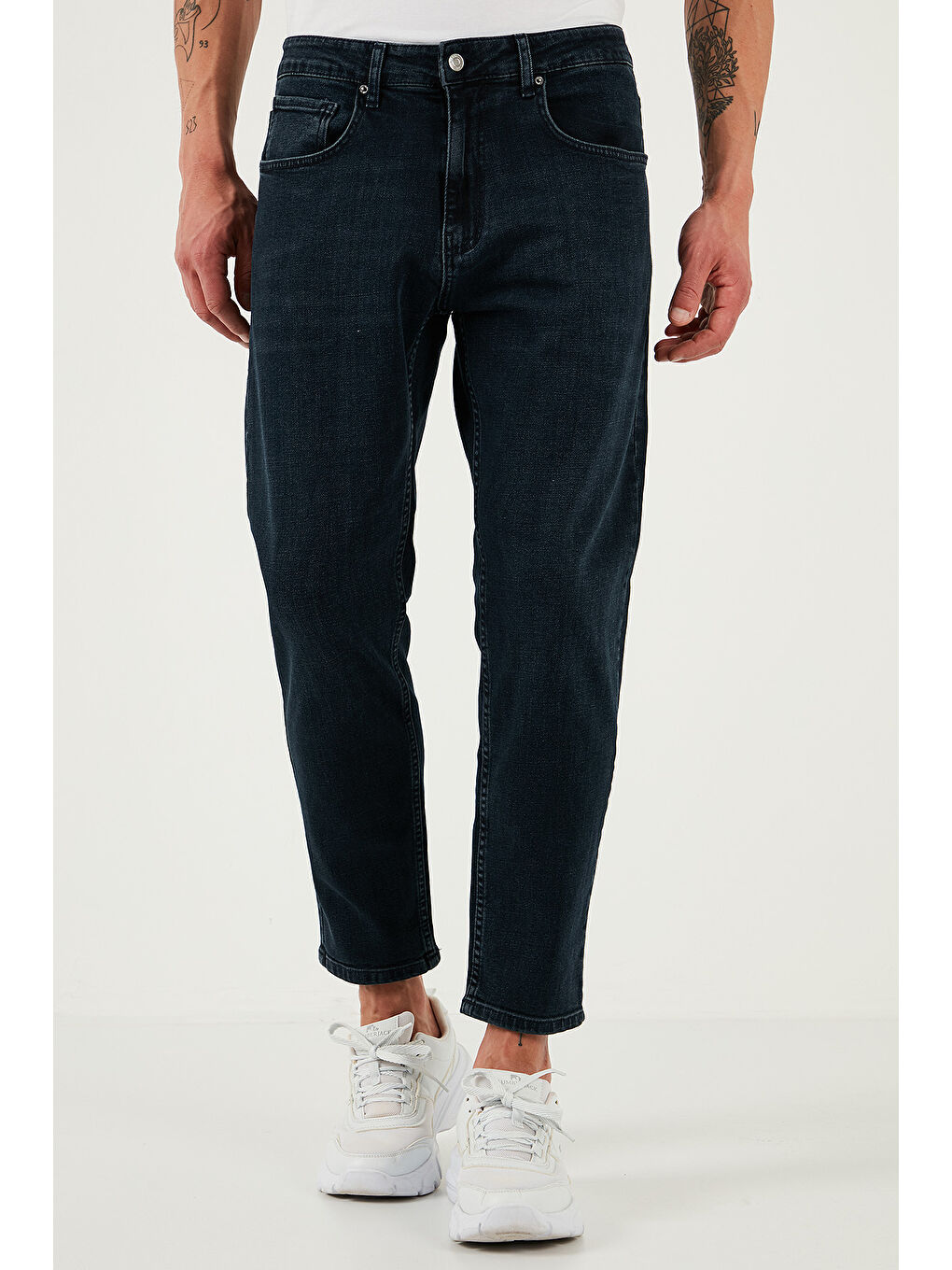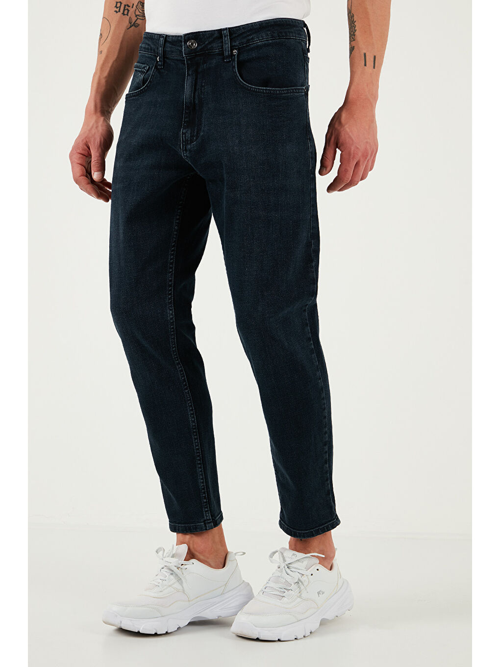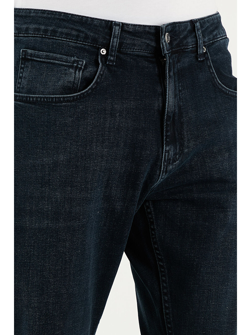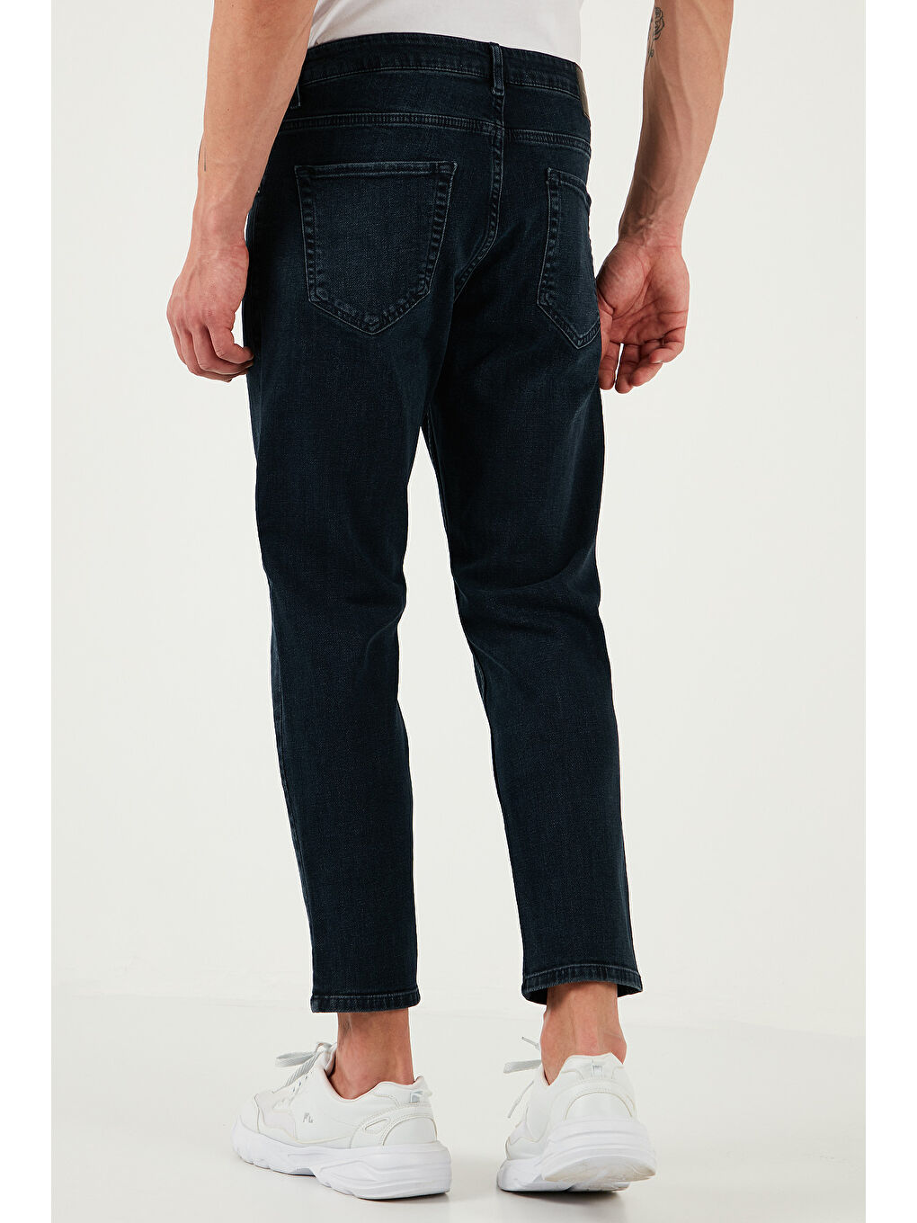 شلوار جین آبی نفتی نخی اسلیم کمر معمولی مخروطی پاچهدار ۵۹۰۰S۸۰MILANO