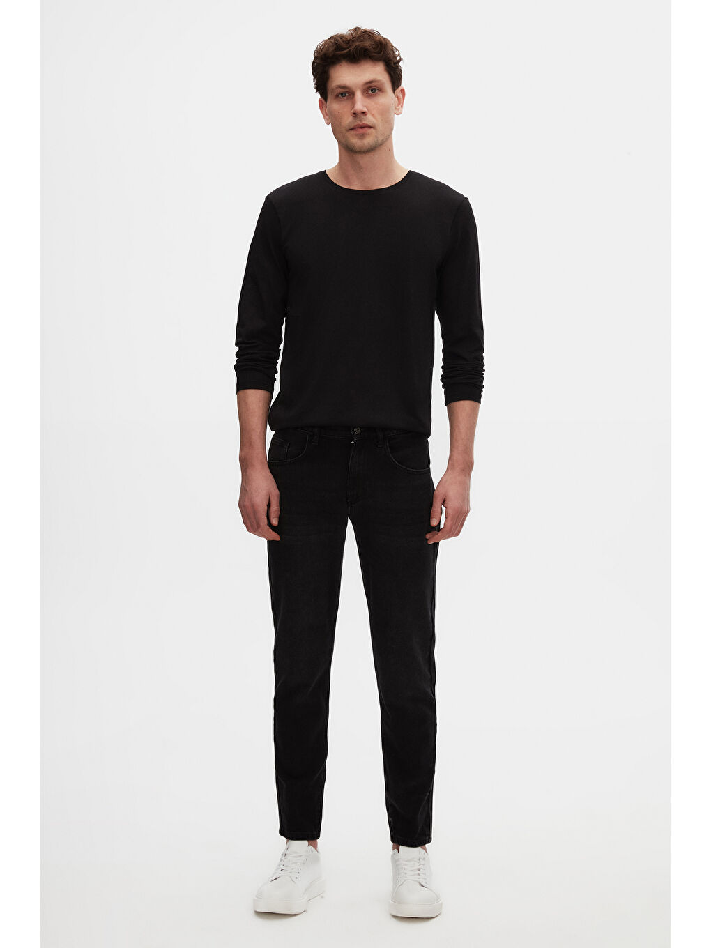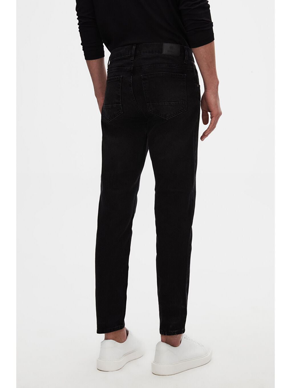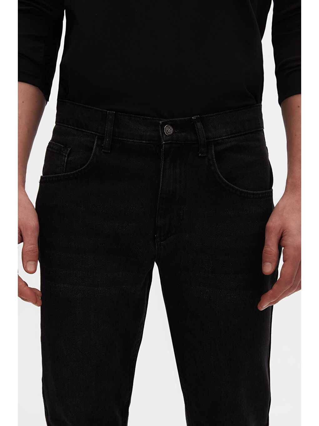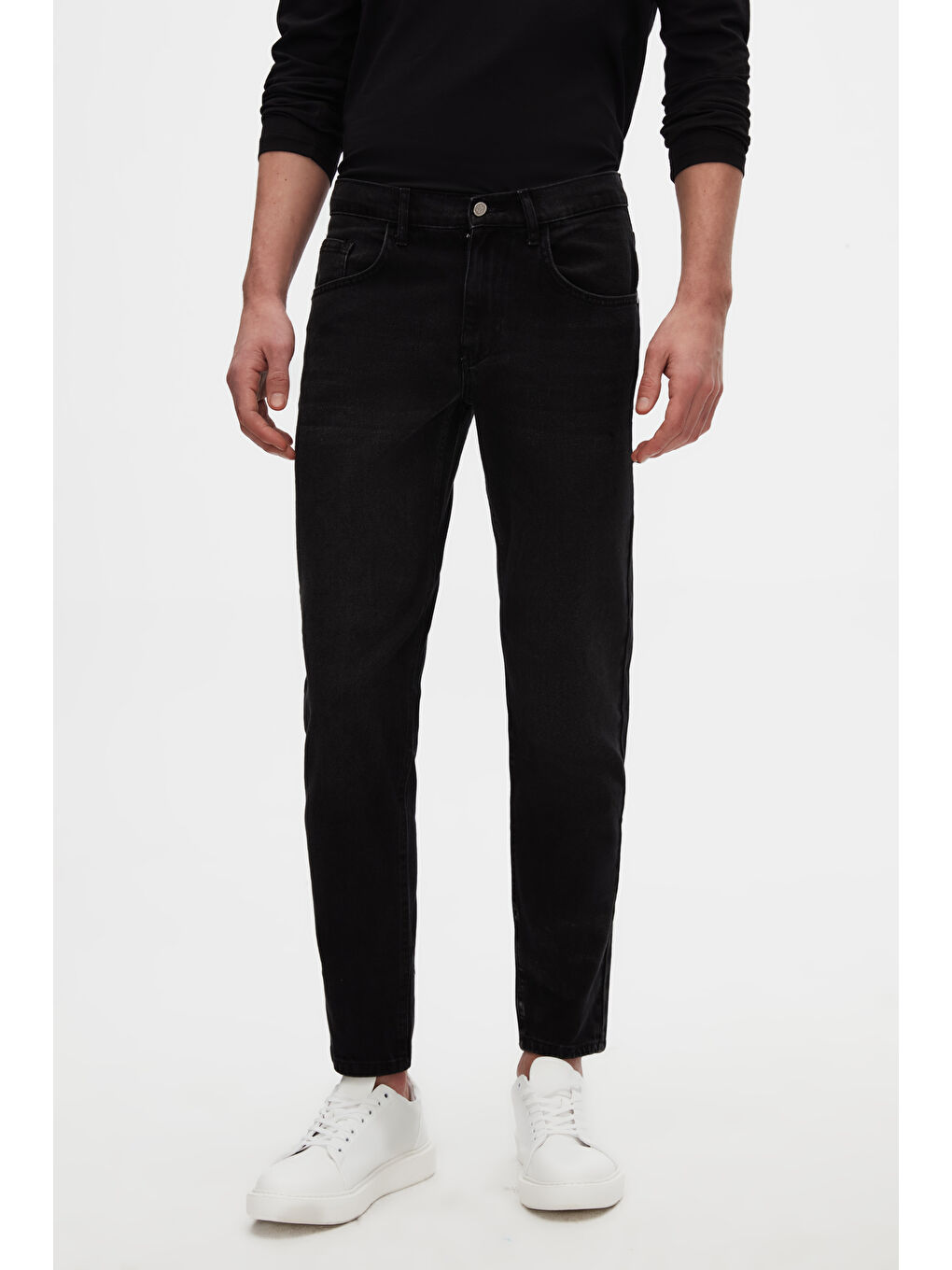 شلوار جین شسته شده راحت، جین راسته مشکی، پنج جیب، الاستین