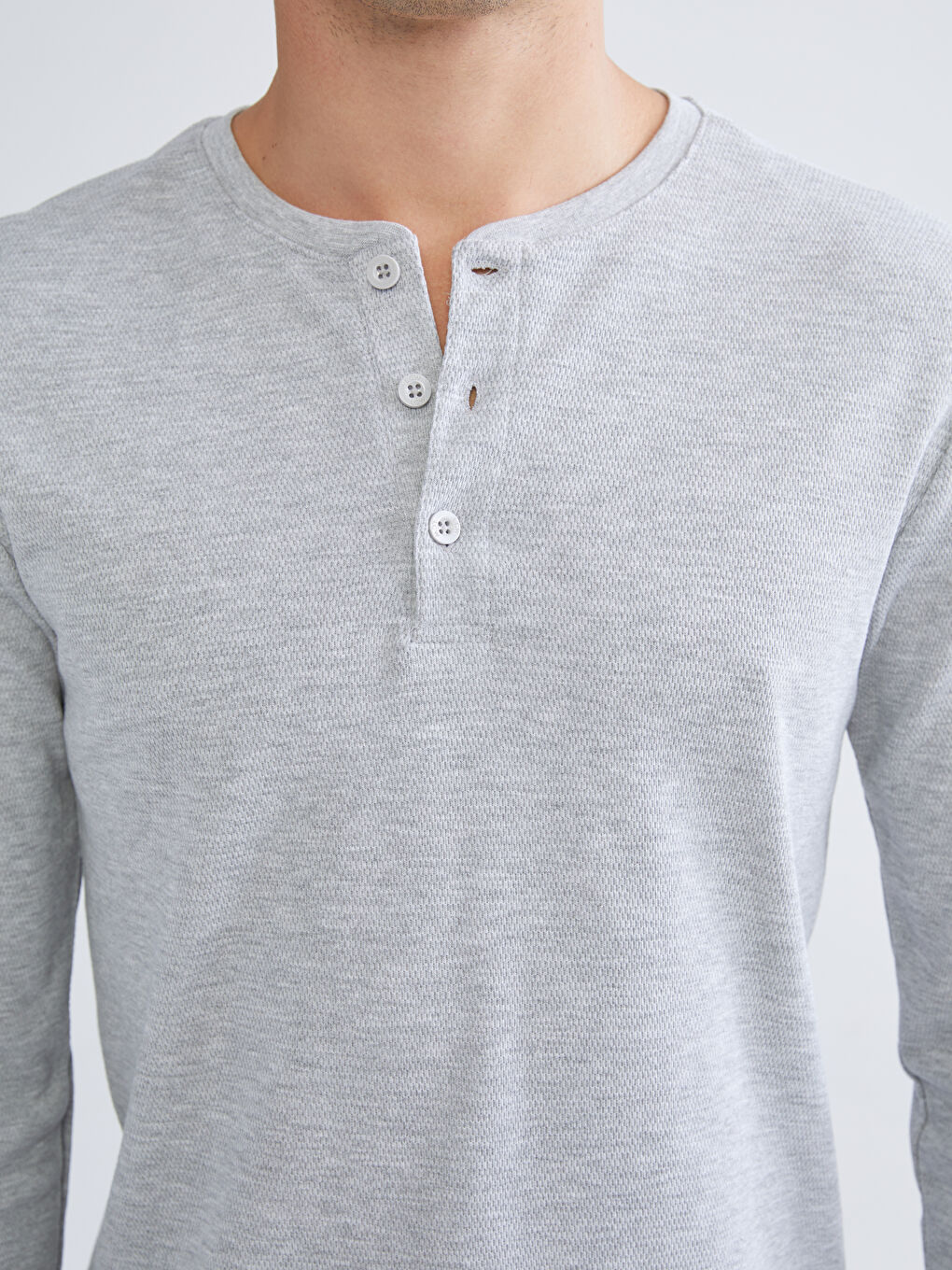تاپ لباس خواب مردانه آستین بلند یقه خدمه خاکستری
