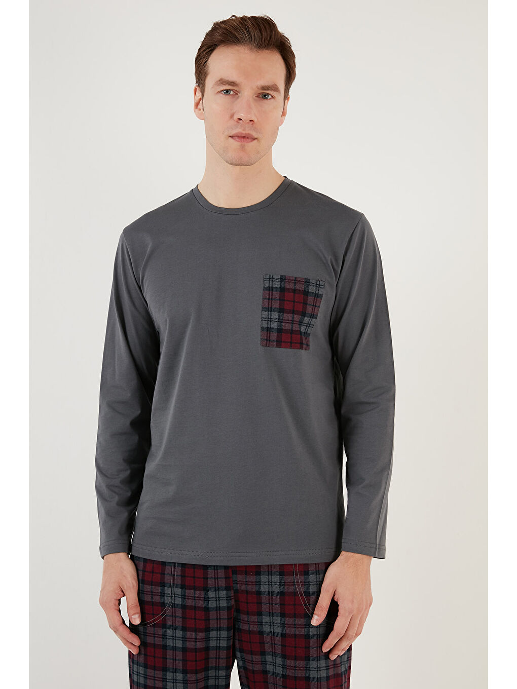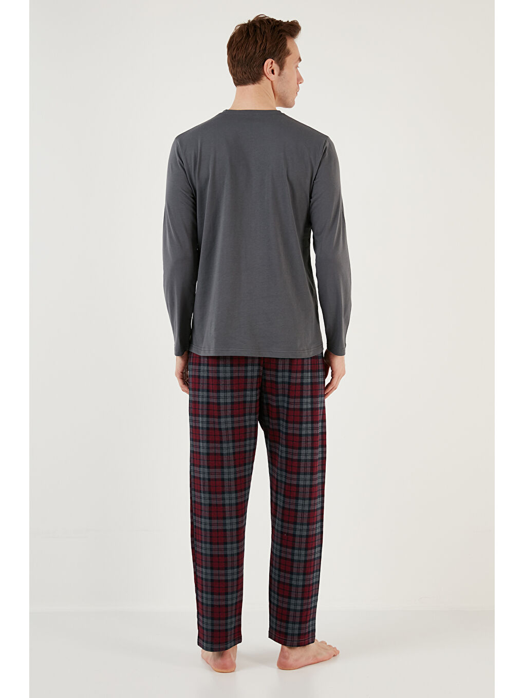 ست لباس خواب مردانه طرح شطرنجی آنتراسیت، کمر کشی، 100% پنبه، سایز معمولی، کد 6572001
