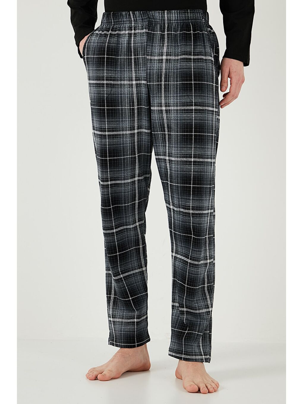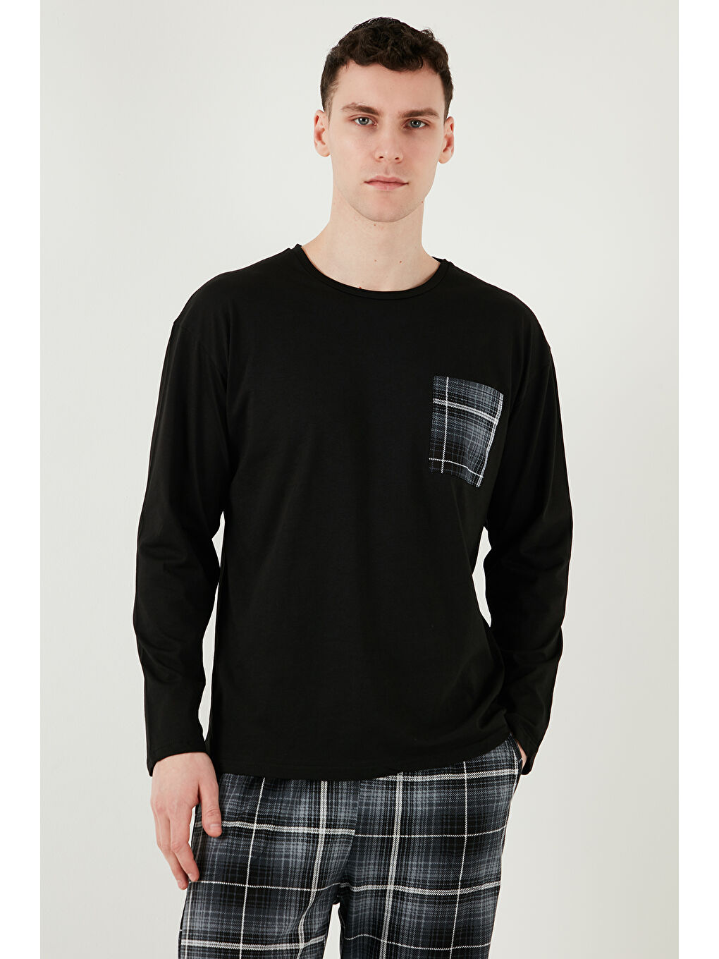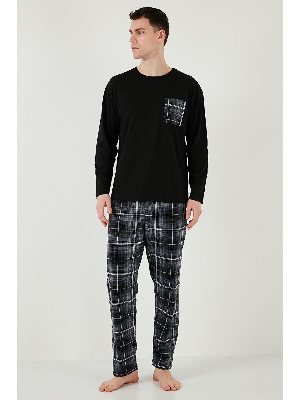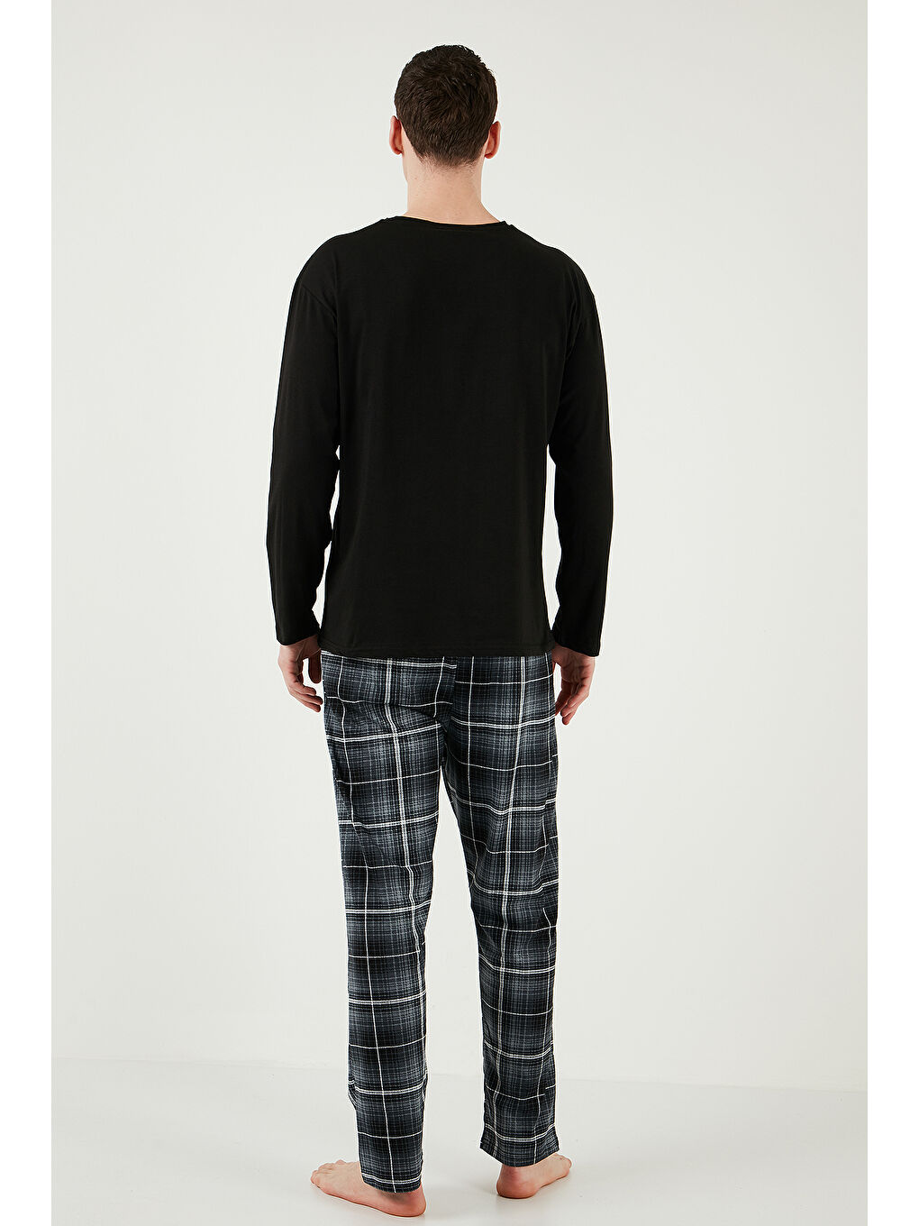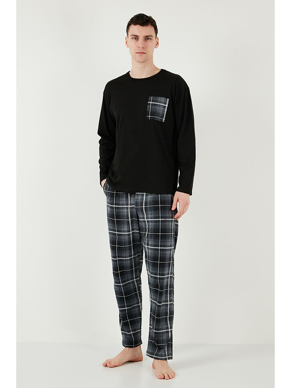 ست لباس خواب مردانه طرح دار مشکی، جیب دار، کمر کشی، 100% پنبه، سایز معمولی، کد 6572001