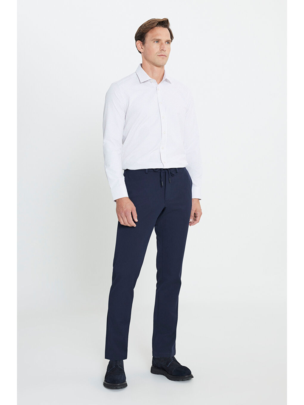 ۶۲٪ پلی‌استر، ۳۳٪ ویسکوز، ۵٪ الاستان، ساده، سرمه‌ای، جیب کناری، فیت باریک، کمر کشی، پاچه دوبل، مدل راحتی، کالکشن زمستانی، سایز محصول: ۳۲، ابعاد مدل: قد: ۱.۸۹ سانتی‌متر، وزن: ۸۰ کیلوگرم، شلوار راحتی انعطاف‌پذیر Altınyıldız Classics Slim Fit Slim Cut Tie Waist Side Pocket. کد محصول: ACE012510154LAC. دستورالعمل شستشو: دمای آب شستشو با ماشین لباسشویی نباید از ۳۰ درجه تجاوز کند. از مواد شیمیایی خشکشویی غیر از تری کلرواتیلن استفاده می‌شود. قابل سفید کردن نیست. قابل خشک شدن در خشک‌کن نیست. دمای پایین-
