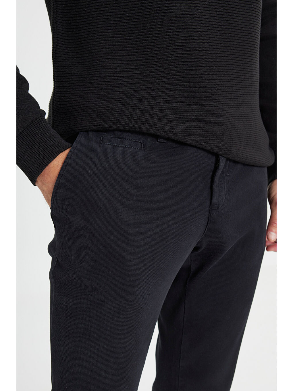 شلوار راحتی مردانه مشکی نخی اسلیم فیت، باریک، جیب کناری دابی، انعطافپذیر