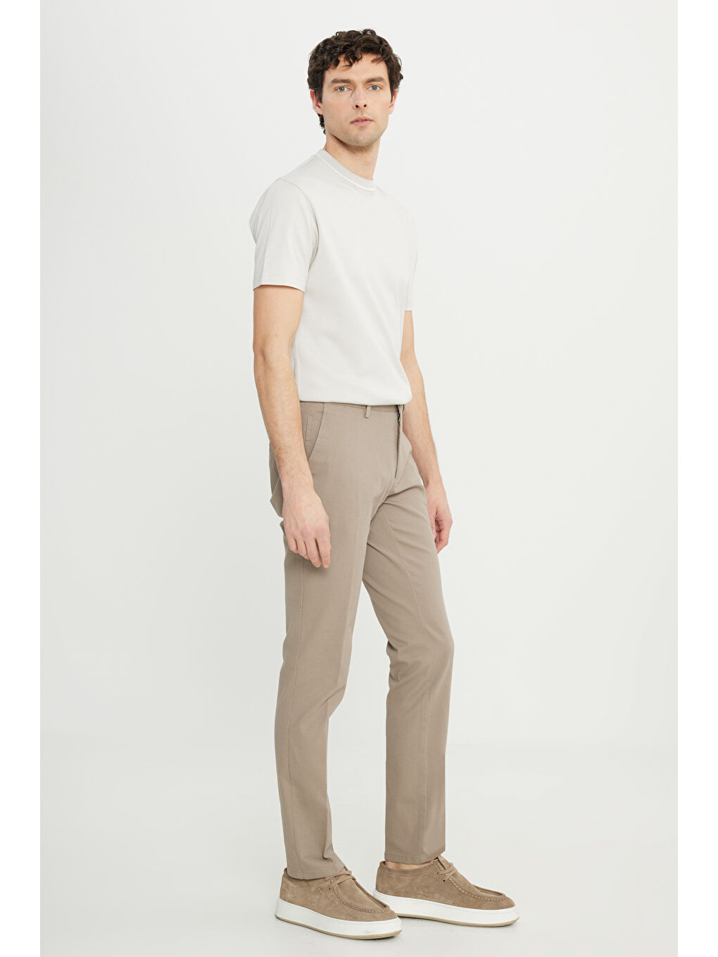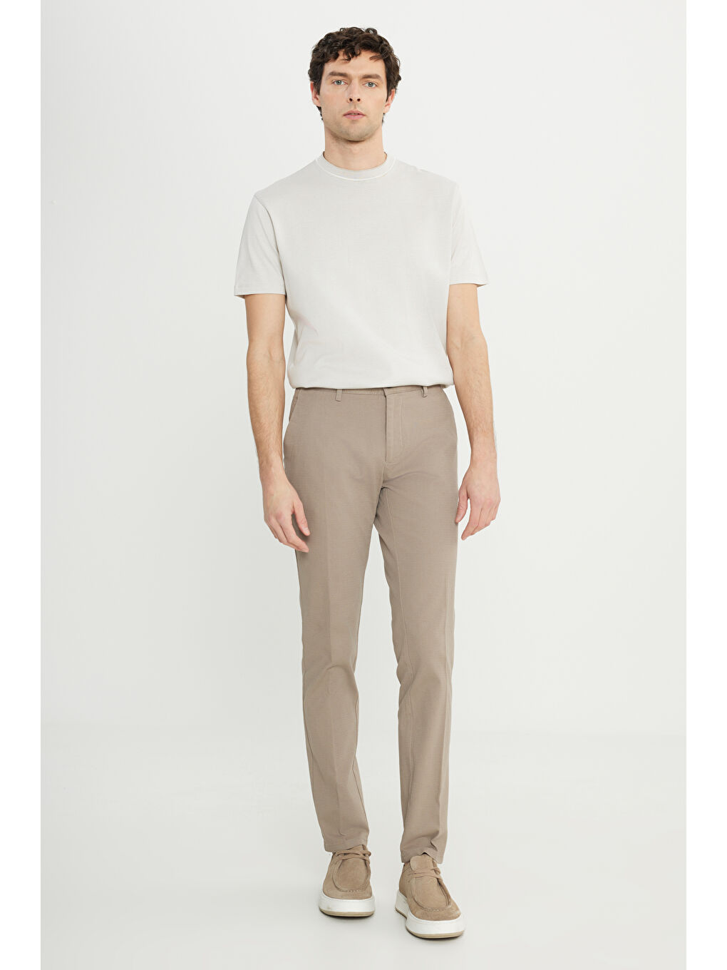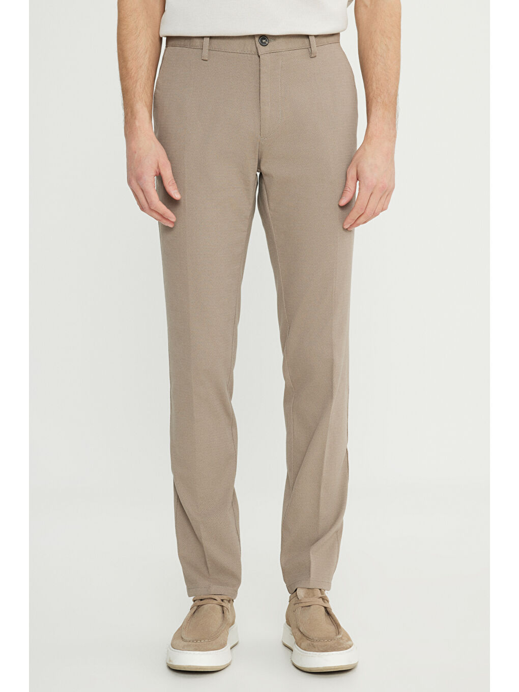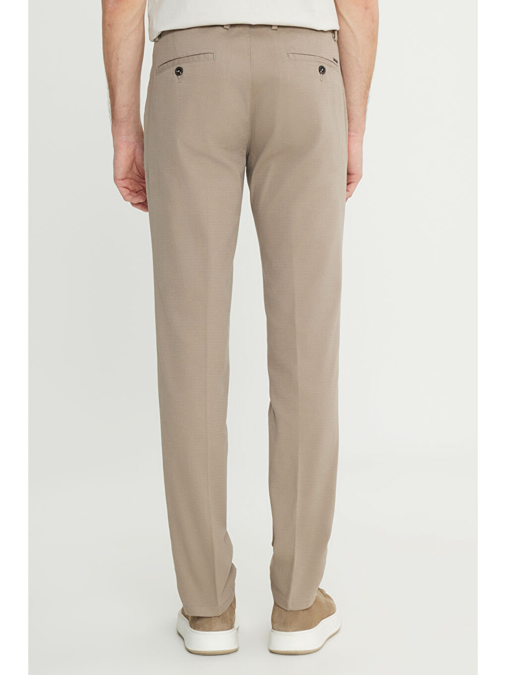 شلوار مردانه قهوهای طرح شتری، اسلیم فیت، اسلیم کات، نخی، انعطافپذیر، دابی، جیب بغل