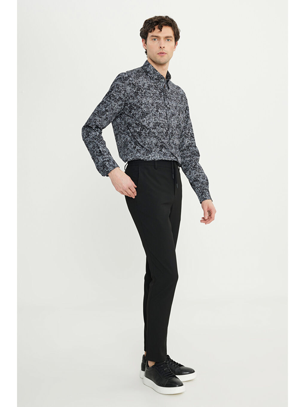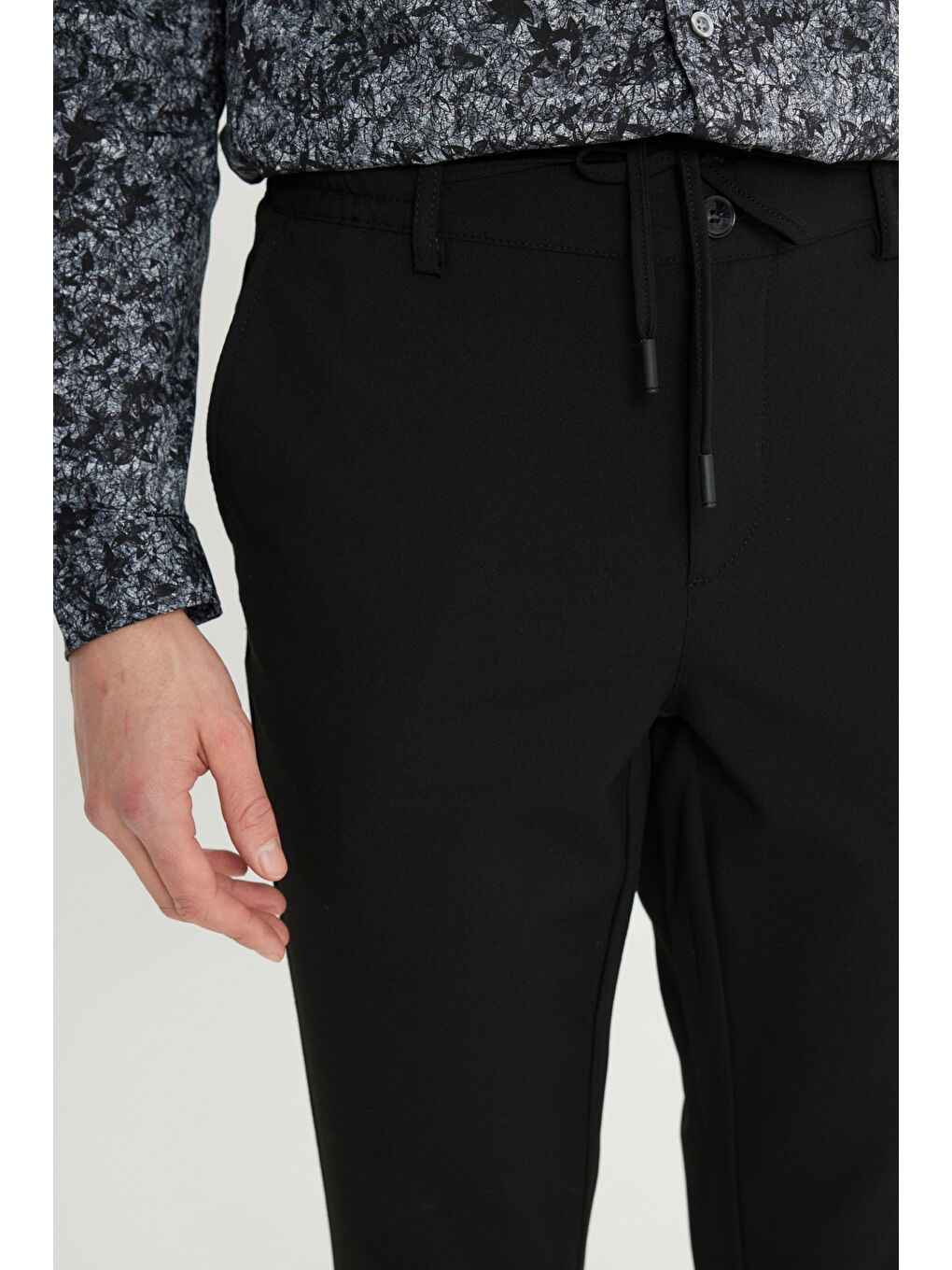 شلوار مردانه مشکی اسلیم فیت، کشی و باریک، دارای کمر کشی و جیب کناری