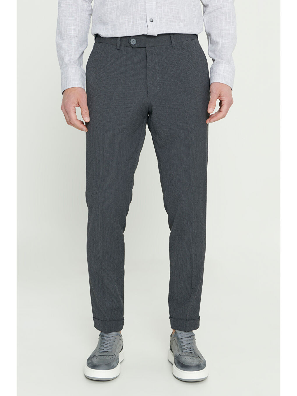 شلوار کمری الاستیک طرح دار مردانه آنتراسیت اسلیم فیت برش باریک ضد چروک پارچه ای Seersucker