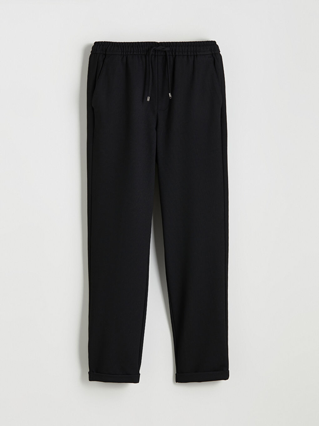 شلوار مردانه سایز استاندارد با کمر کشی و بند قابل تنظیم. جیب‌های کناری و لبه‌های تاشو.