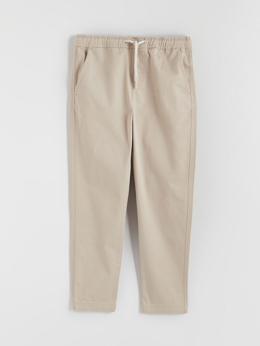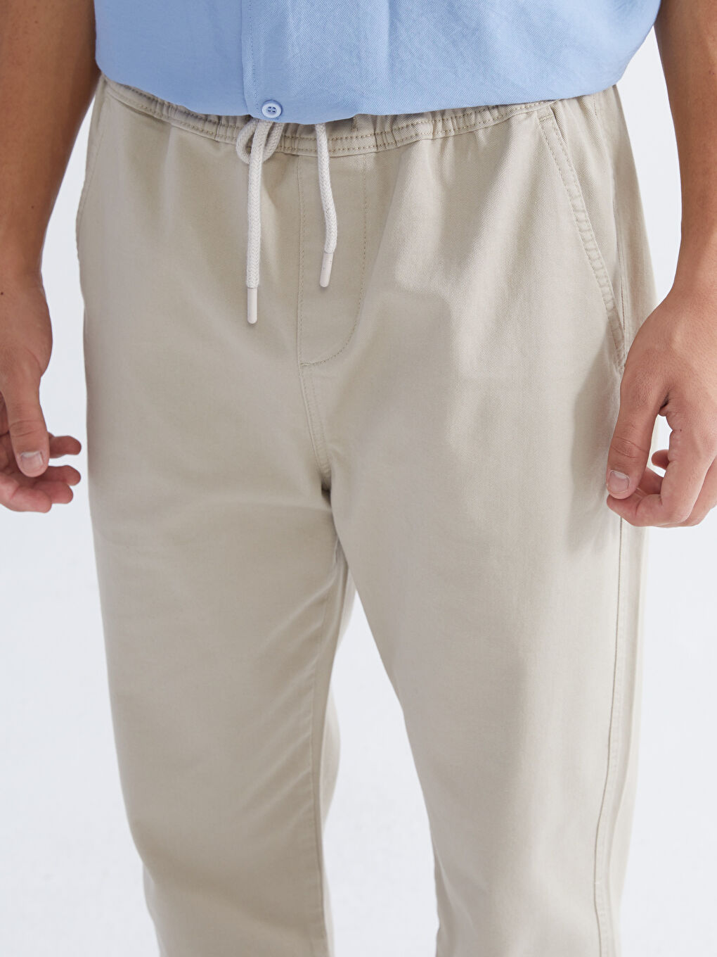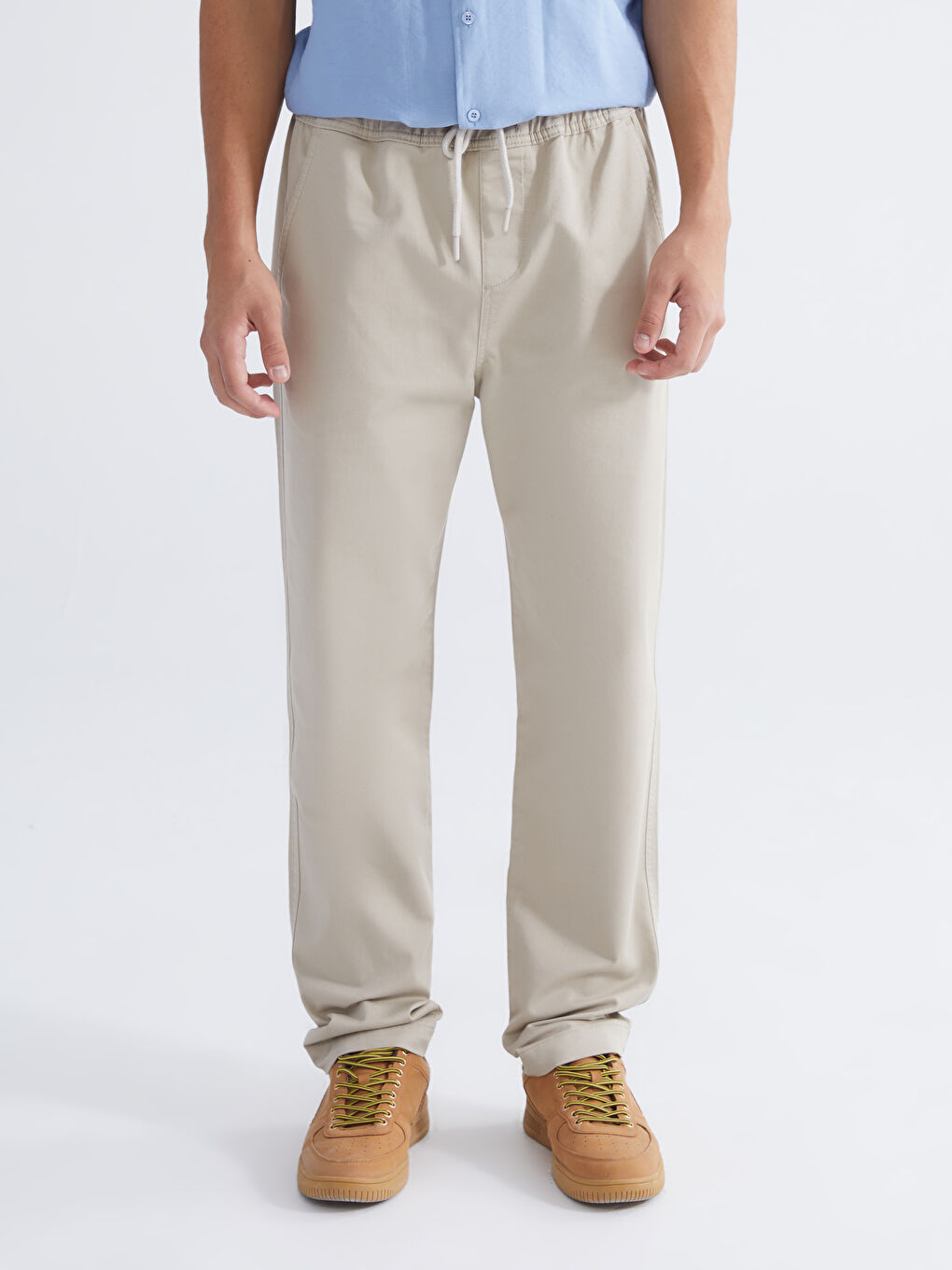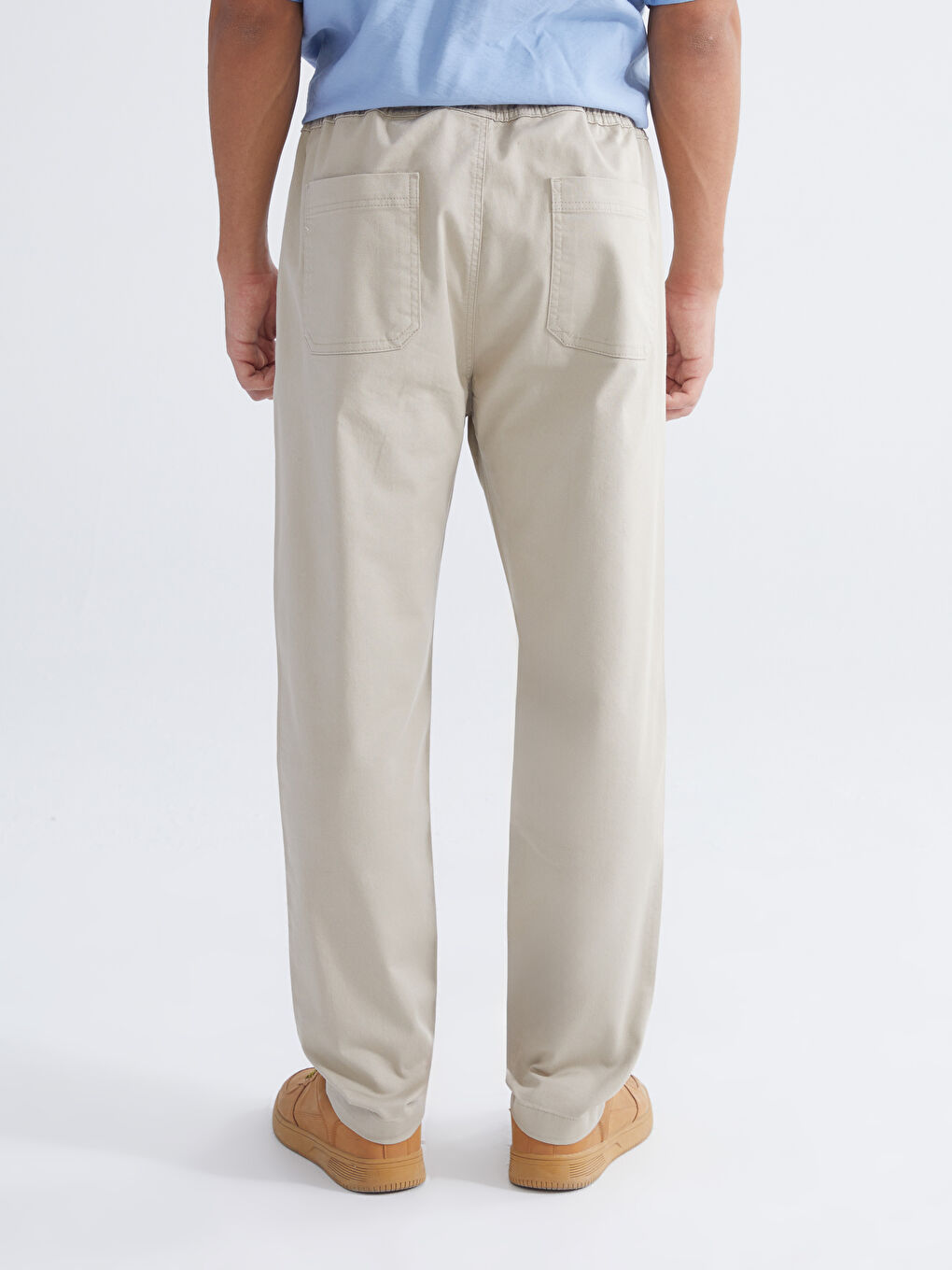 این شلوار مردانهی اسلیم فیت از پارچهی نخی باکیفیت ساخته شده است. این شلوار دارای کمر کشی با بندهای قابل تنظیم و جیبهای کناری است.