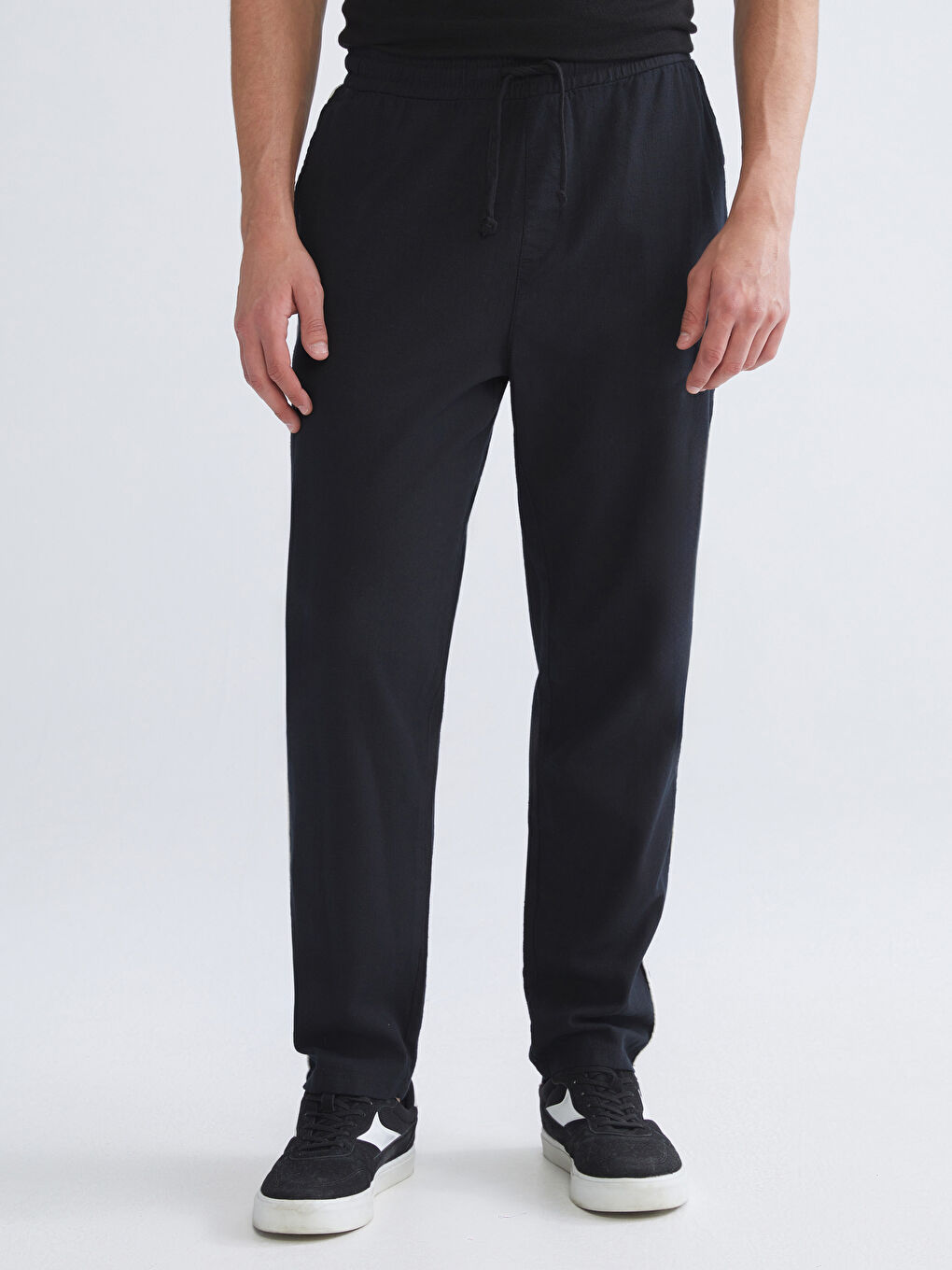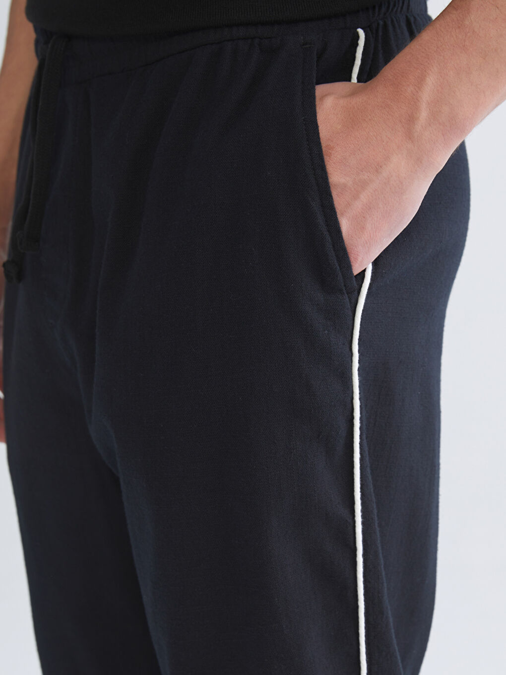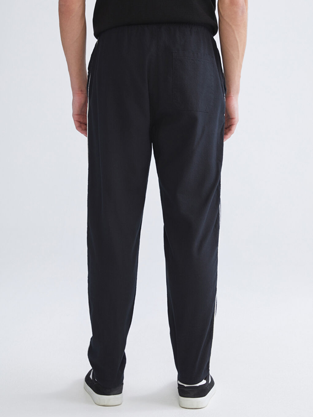 این شلوار مردانه گشاد از ۱۰۰٪ پنبه ساخته شده است. دارای کمر کشی با بندهای قابل تنظیم و نوارهای کناری است.