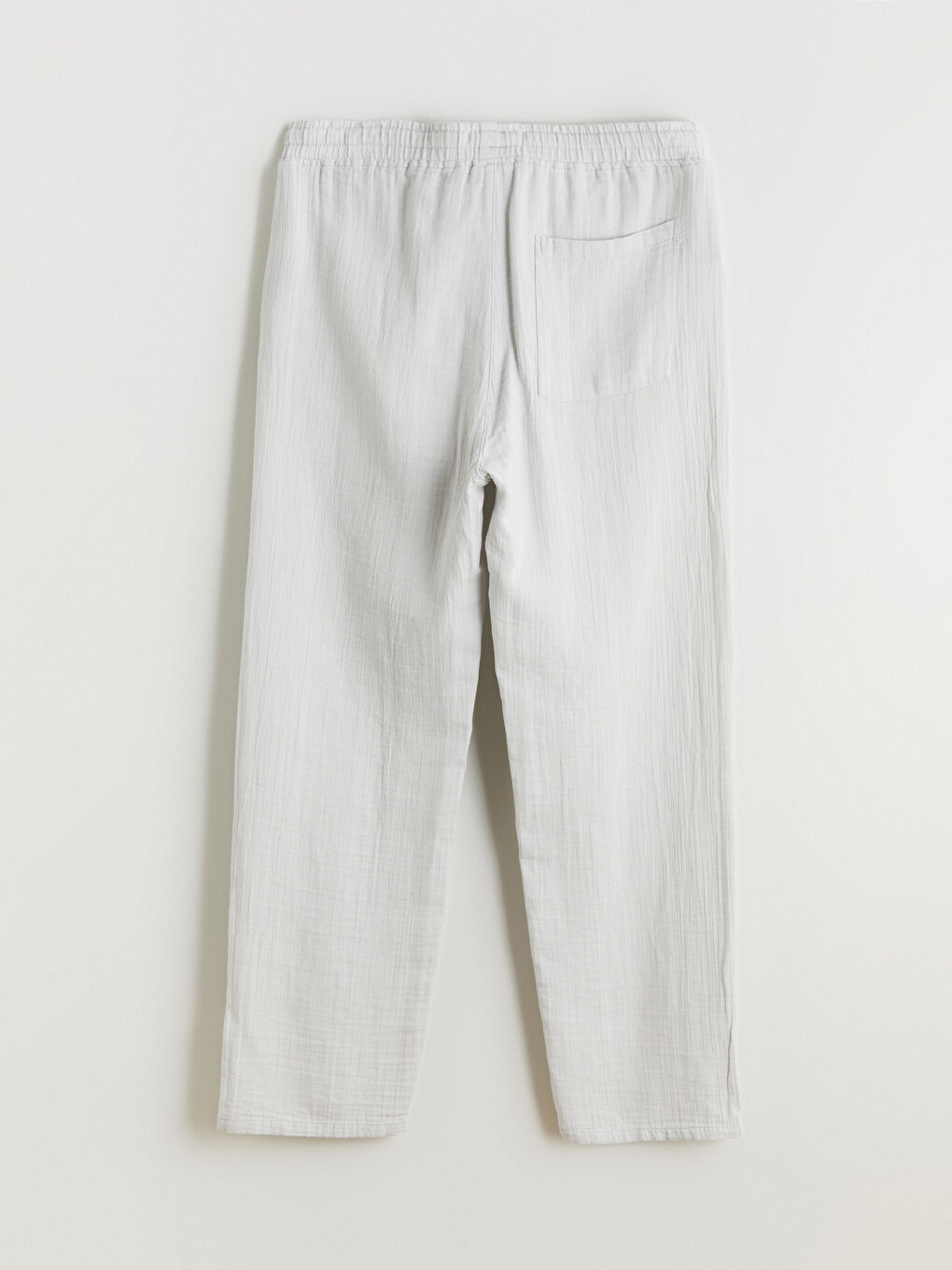 این شلوار مردانه گشاد از پارچه موسلین ۱۰۰٪ پنبهای ساخته شده است. کمر آن کشی و بنددار است و پاچههای گشادی دارد.
