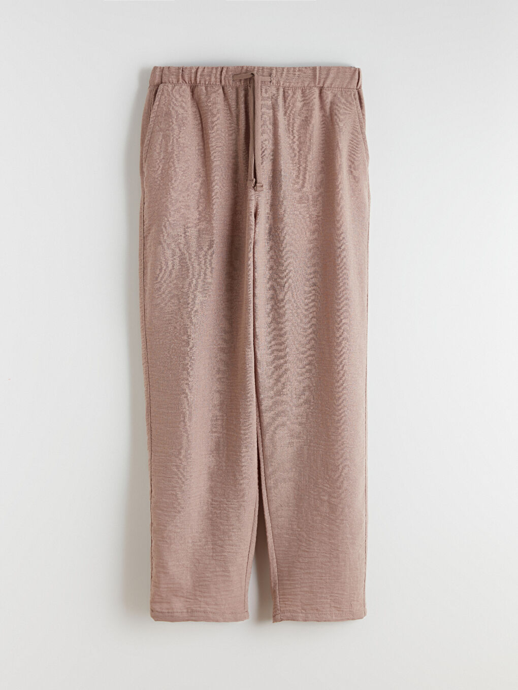 شلوار گشاد مردانه با کمر کش دار و توری، برش ساق گشاد و از پارچه طرح دار.