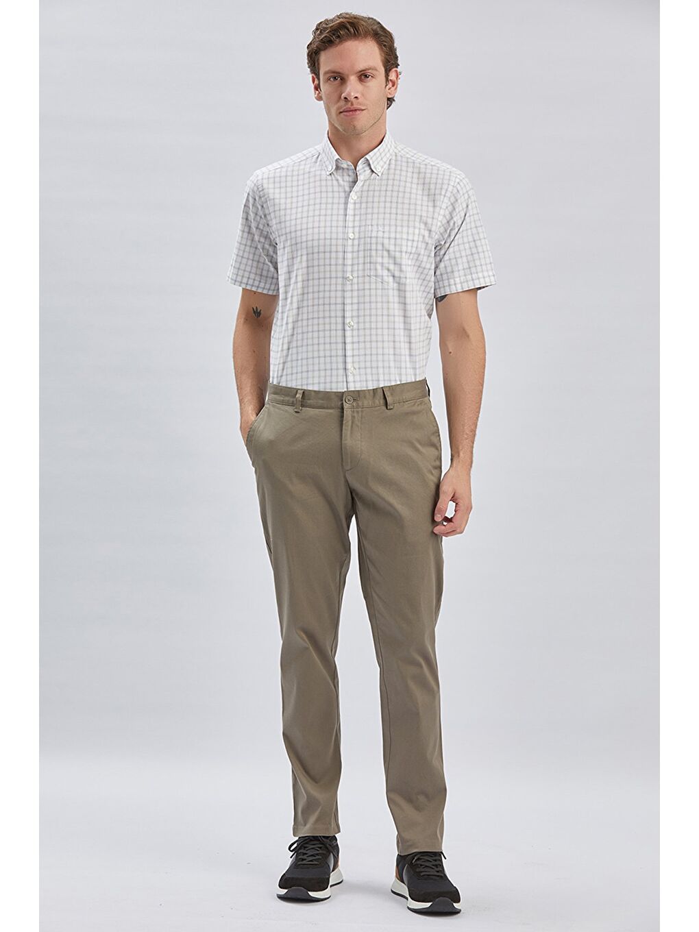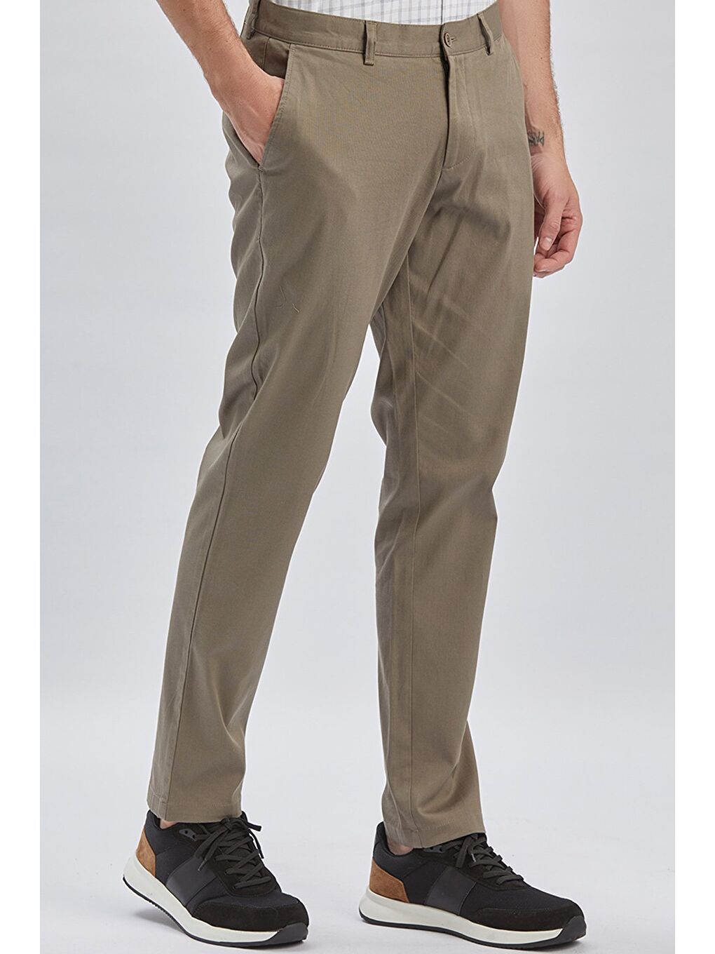 شلوار چینی راحتی فیت کژوال کنار جیب نخی خاکی 1003240160