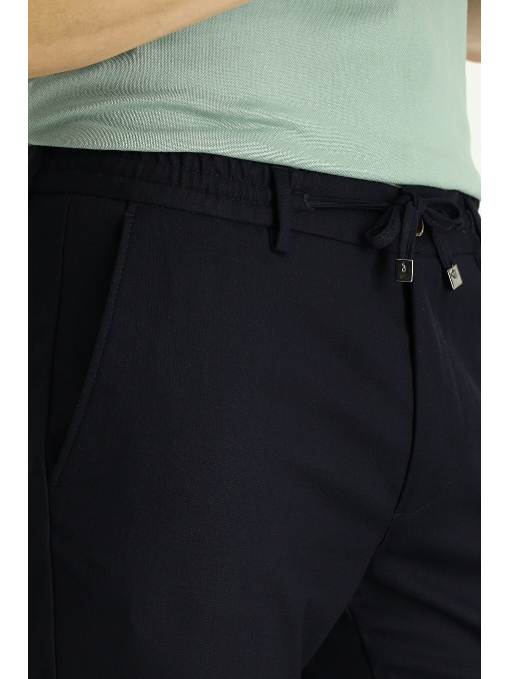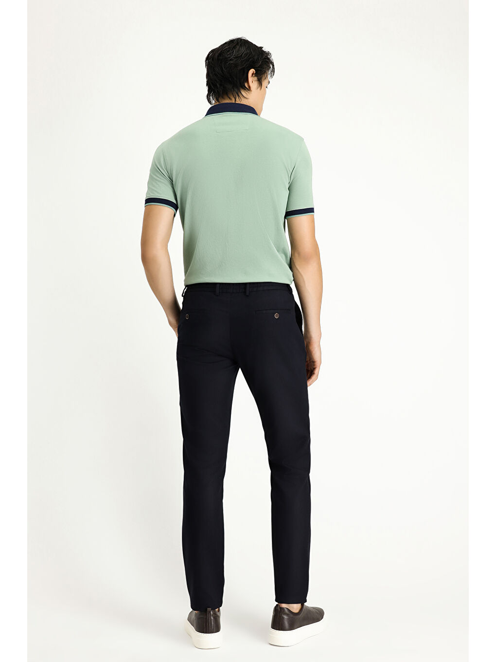 شلوار کتان کشی کمر کشی سرمهای مدل Slim Fit Slim Cut Elastane