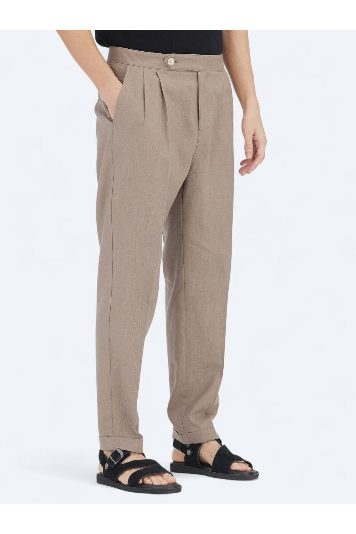 کیپ شلوار کتان طرح هویج تیره از جنس سمور یا راسو