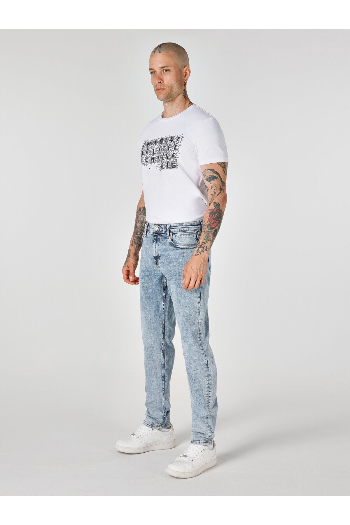 کولینز 041 شلوار جین مردانه دنی اسلیم فیت با کمر صاف با ساق بلند آبی