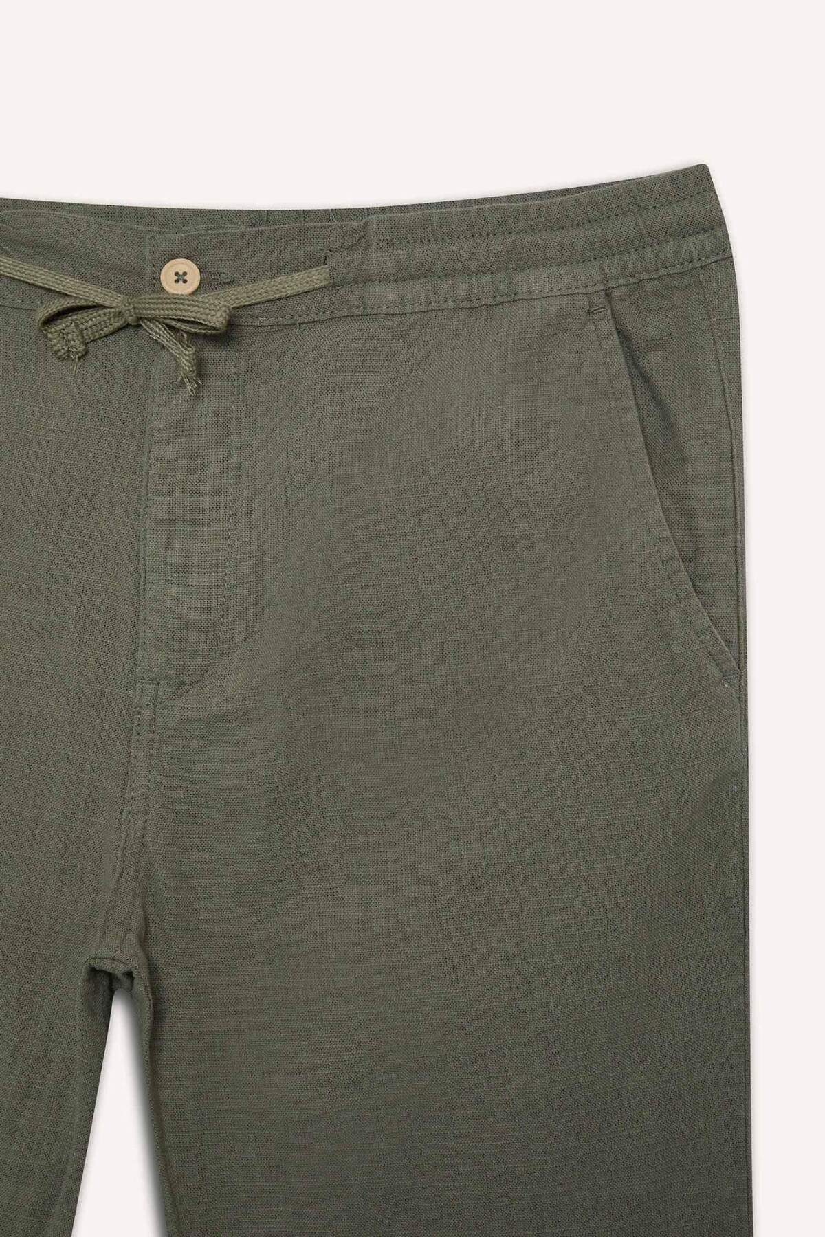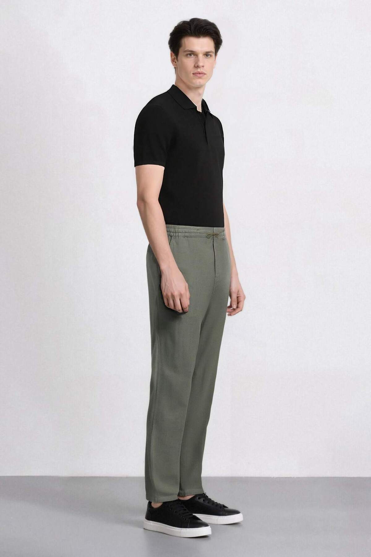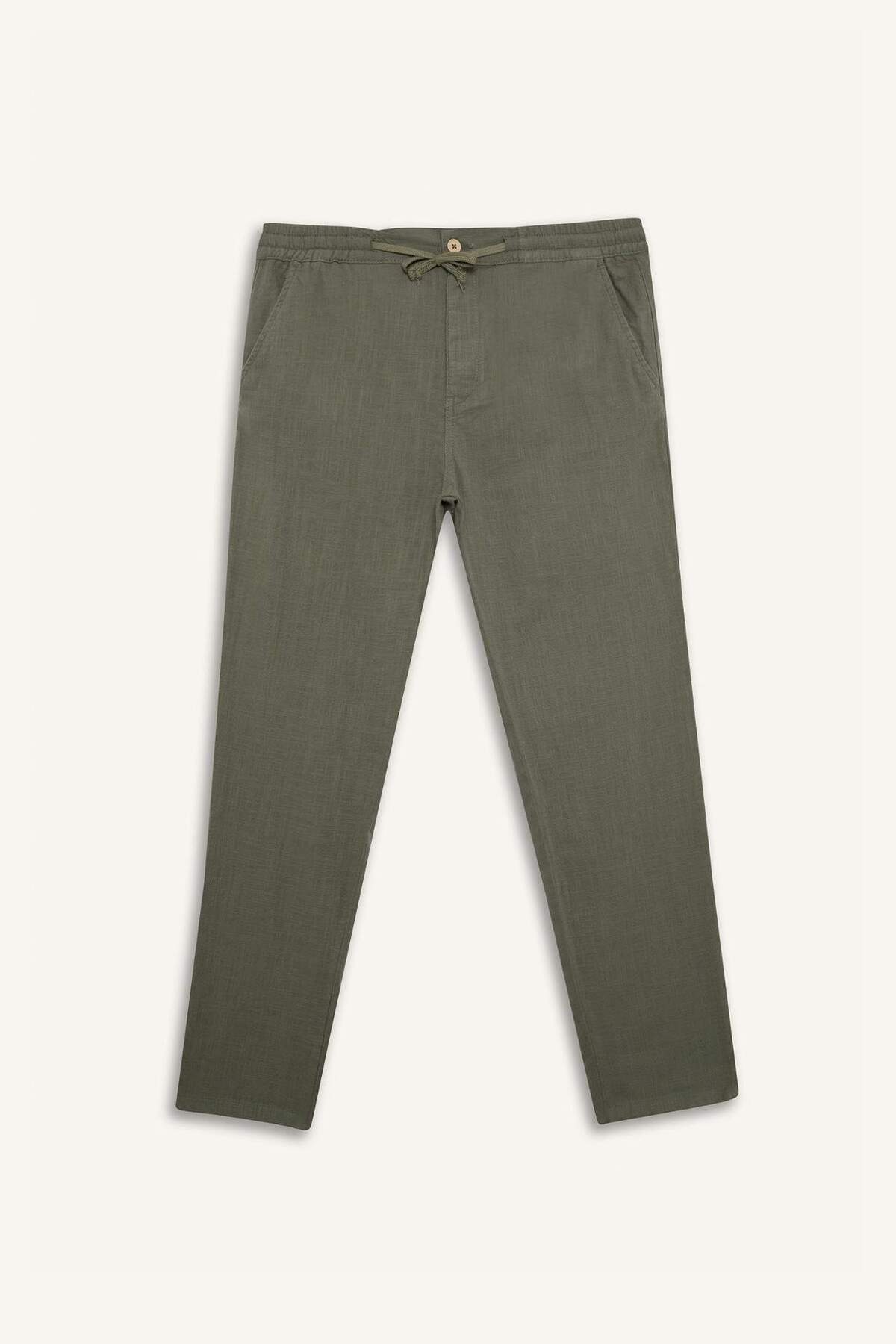 دفاکتو شلوار کتان ۱۰۰٪ پنبهای با کمر کشی، مناسب برای افراد لاغر، برش باریک، جیبدار، دمپا گشاد D2671AX25SM