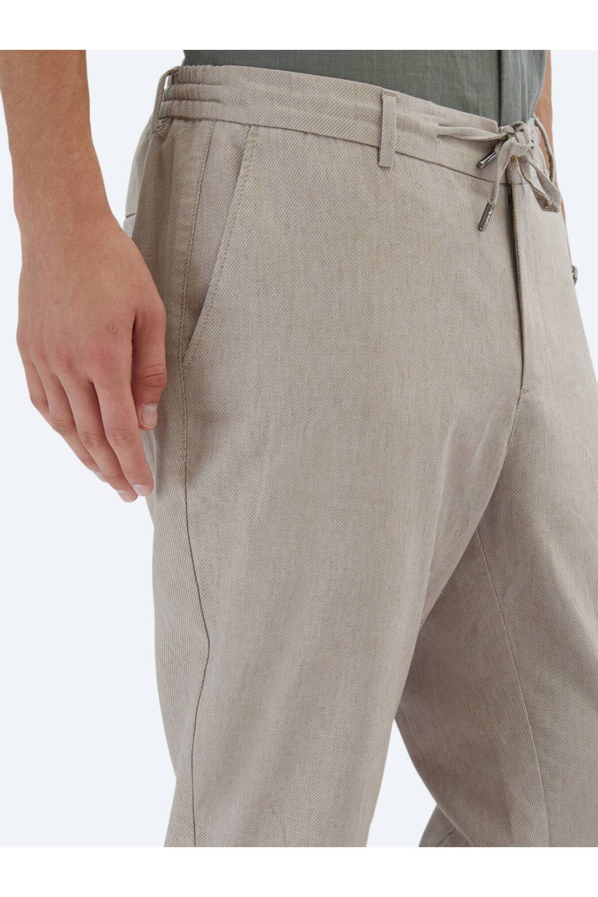 کیپ شلوار کتان نخی طرح خاکی ساده و مناسب برای دویدن