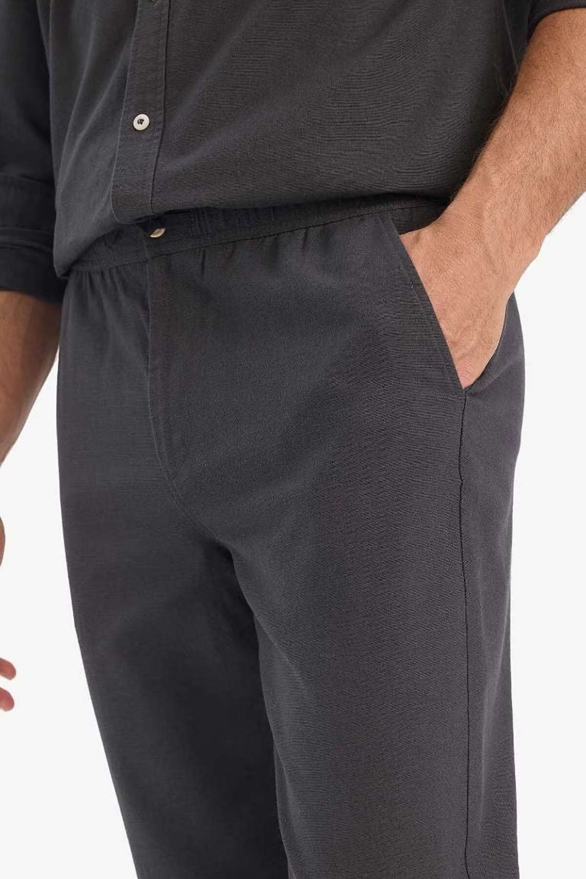 دفاکتو شلوار مردانه ۱۰۰٪ کتان اسلیم فیت، طرح کتان، جنس آنتراسیت، مدل Jogger، D2671AX/AR9