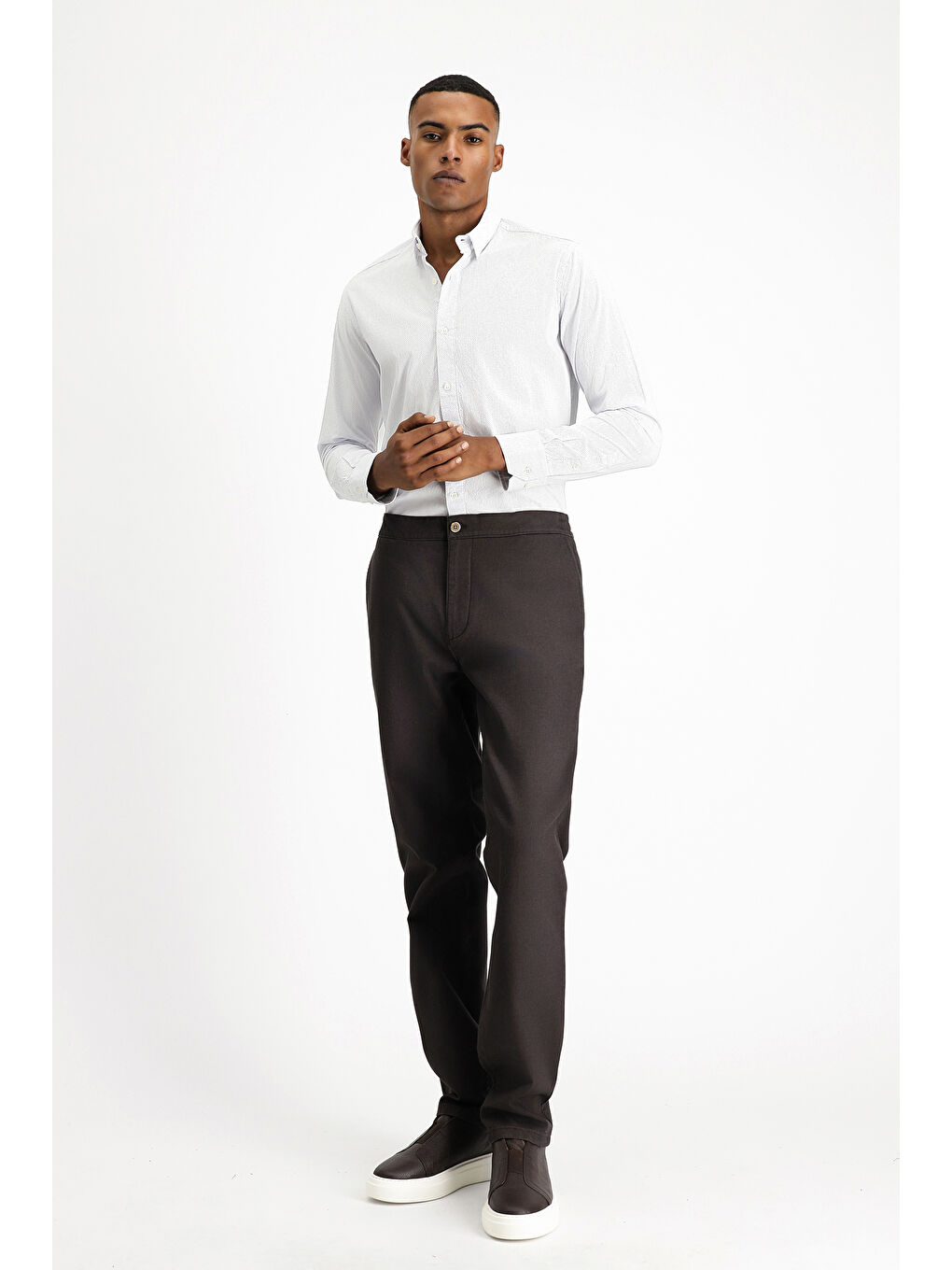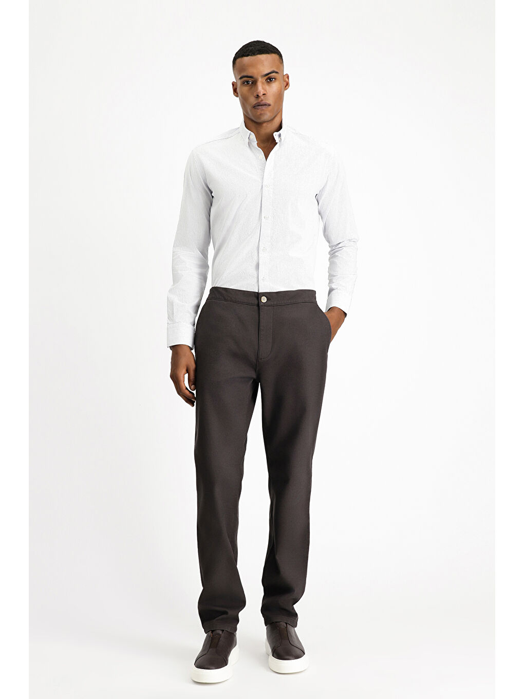 بوم الاستین با تناسب معمولی قهوه ای / شلوار چینی