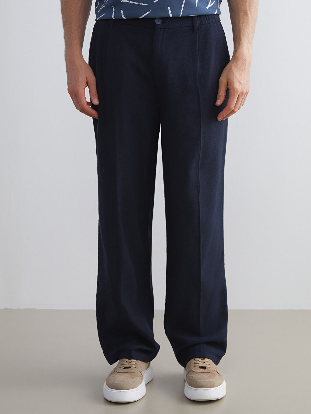 شلوار مردانه کتانی ترکیبی سبک آبی ناوی