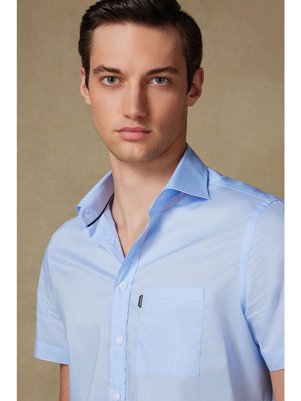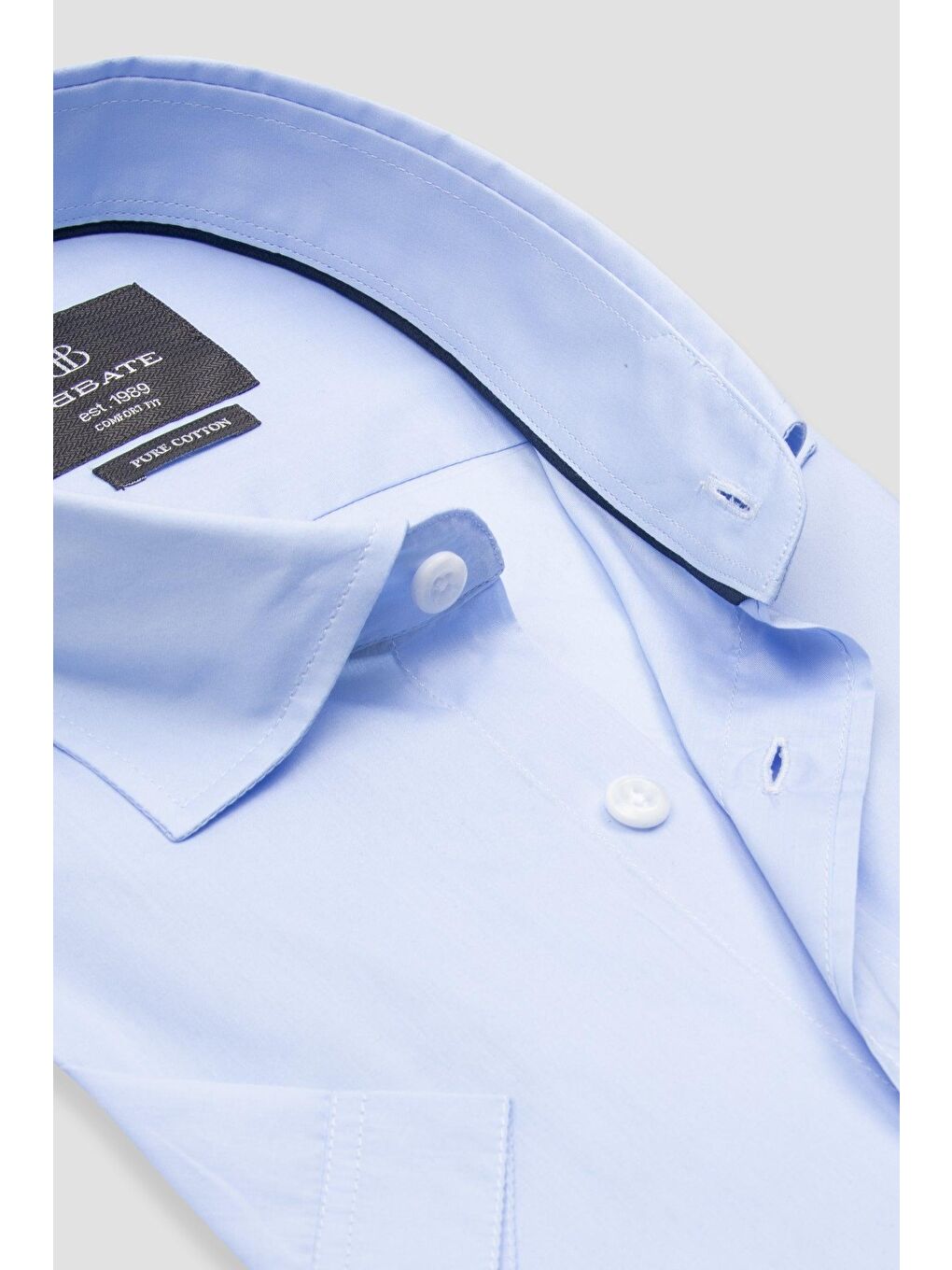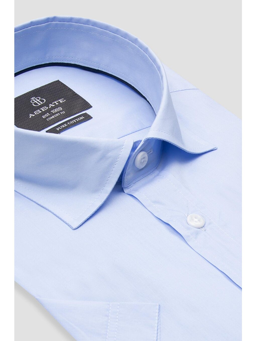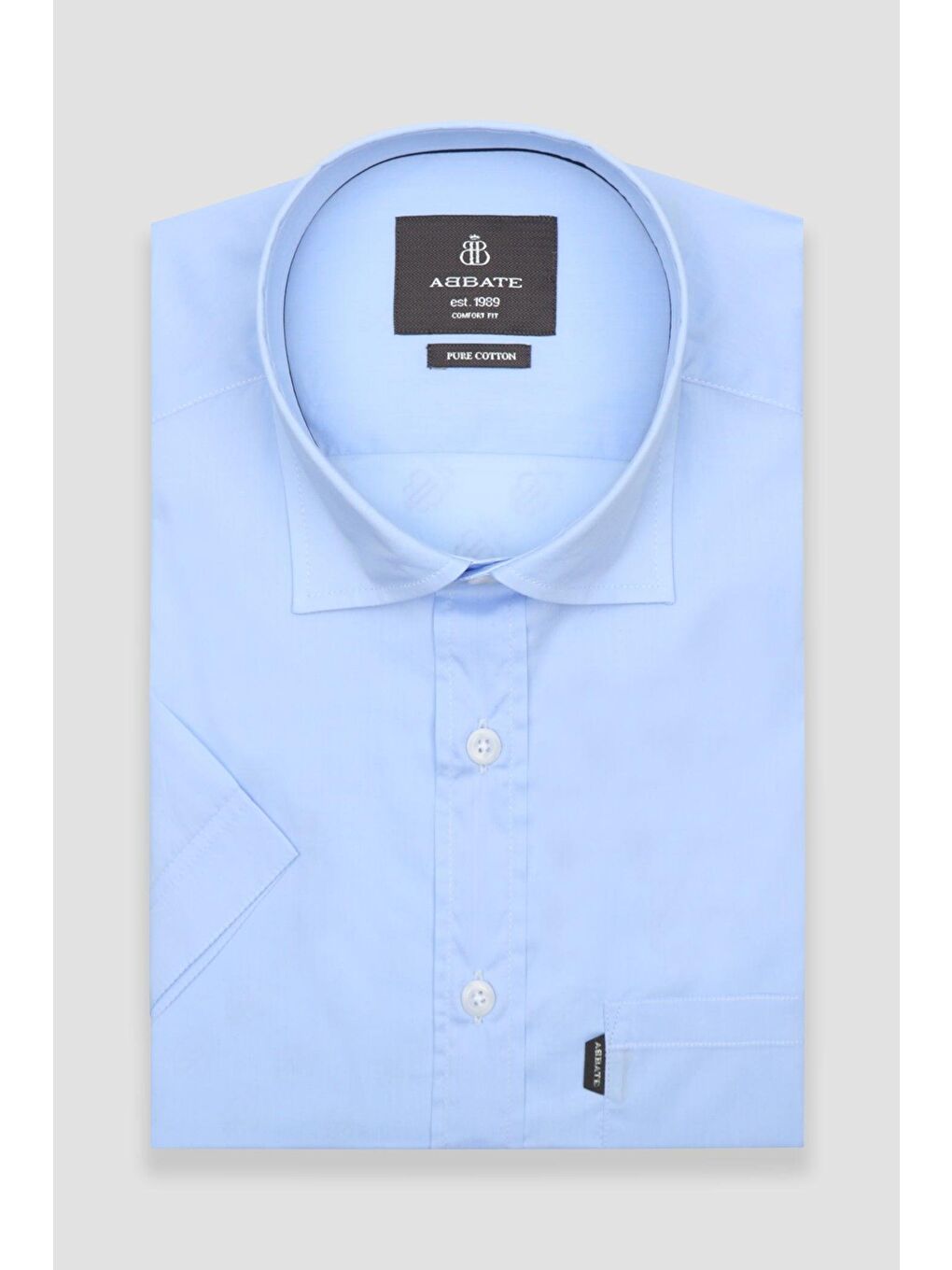 پیراهن مردانه ساده ونتو پوپلین نخی، یقه کلاسیک آبی، راحت و مناسب