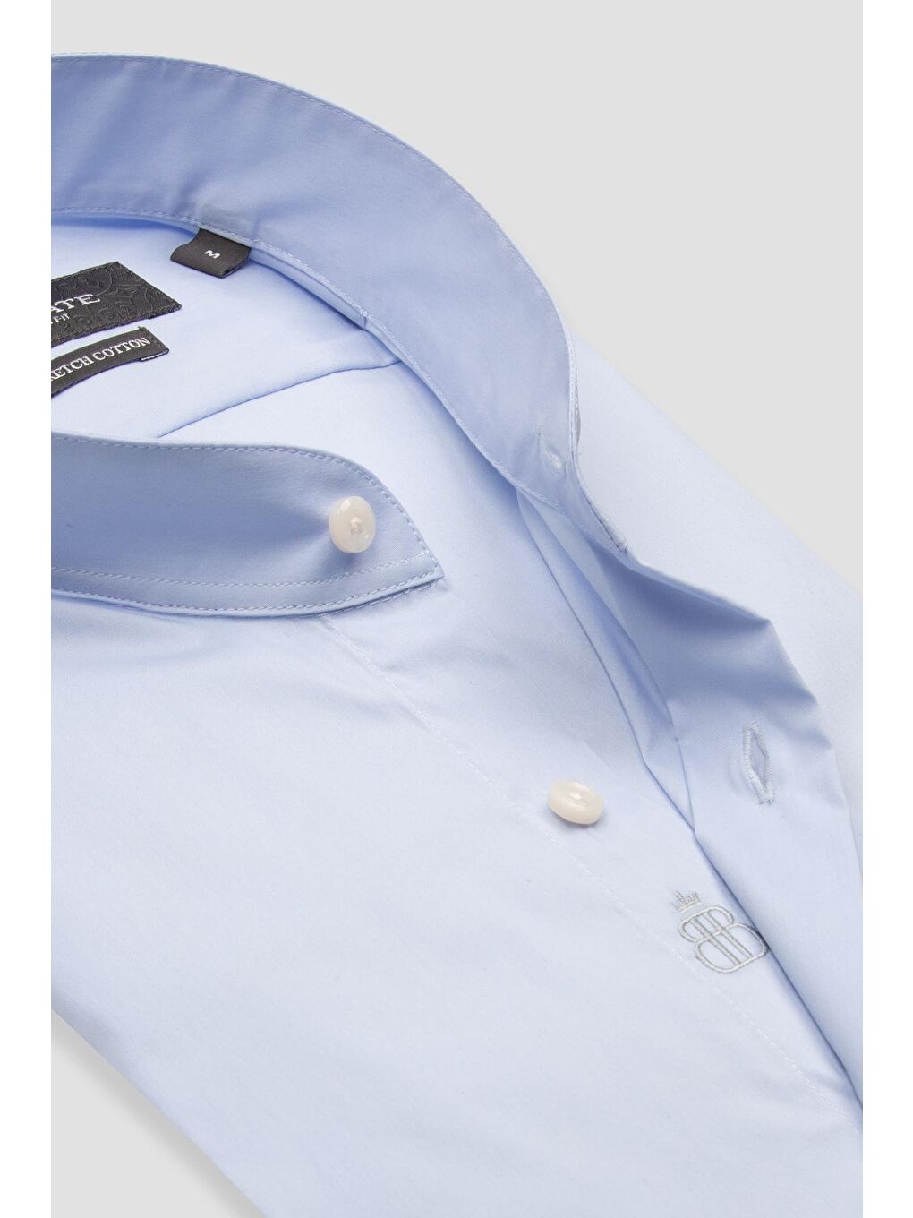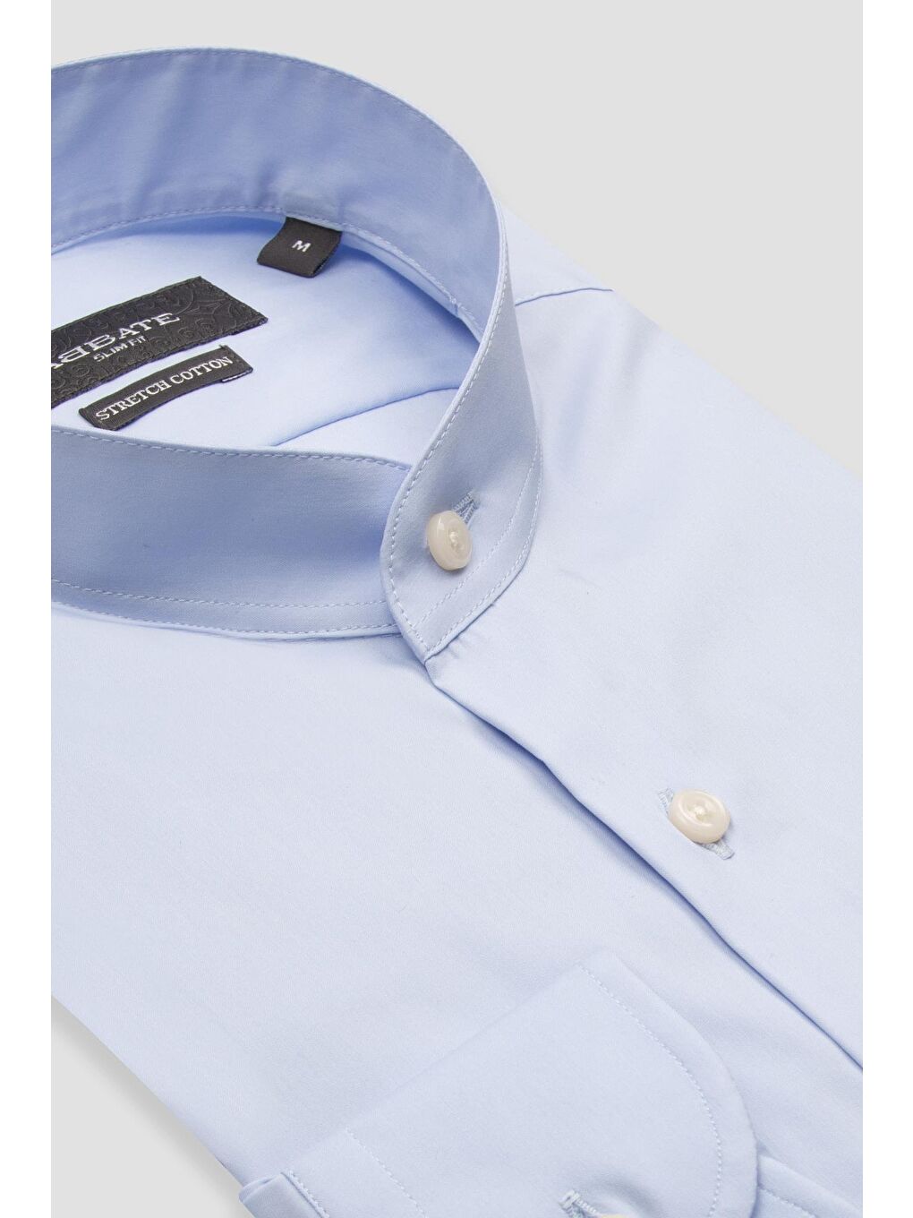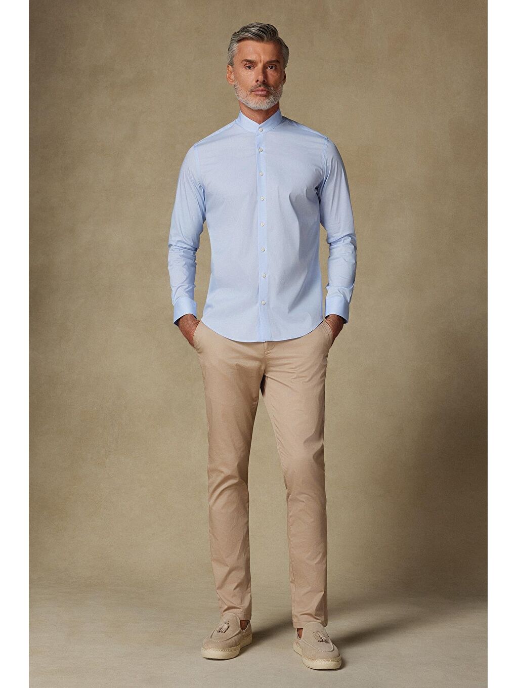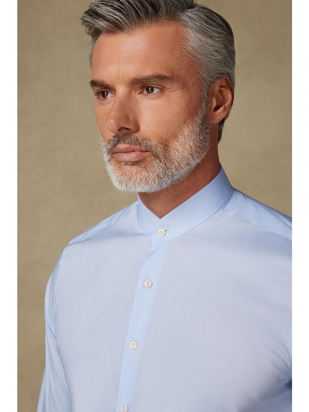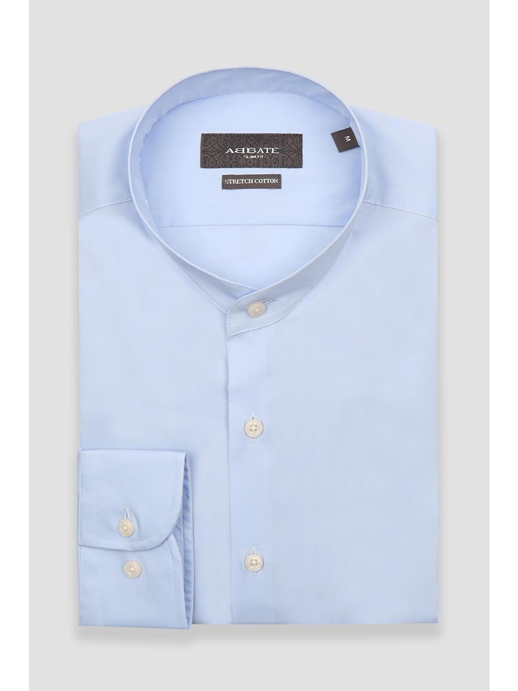 پیراهن ساده مردانه با یقه پایه آبی روشن، ترکیبی نخی کشدار Mao Poplin