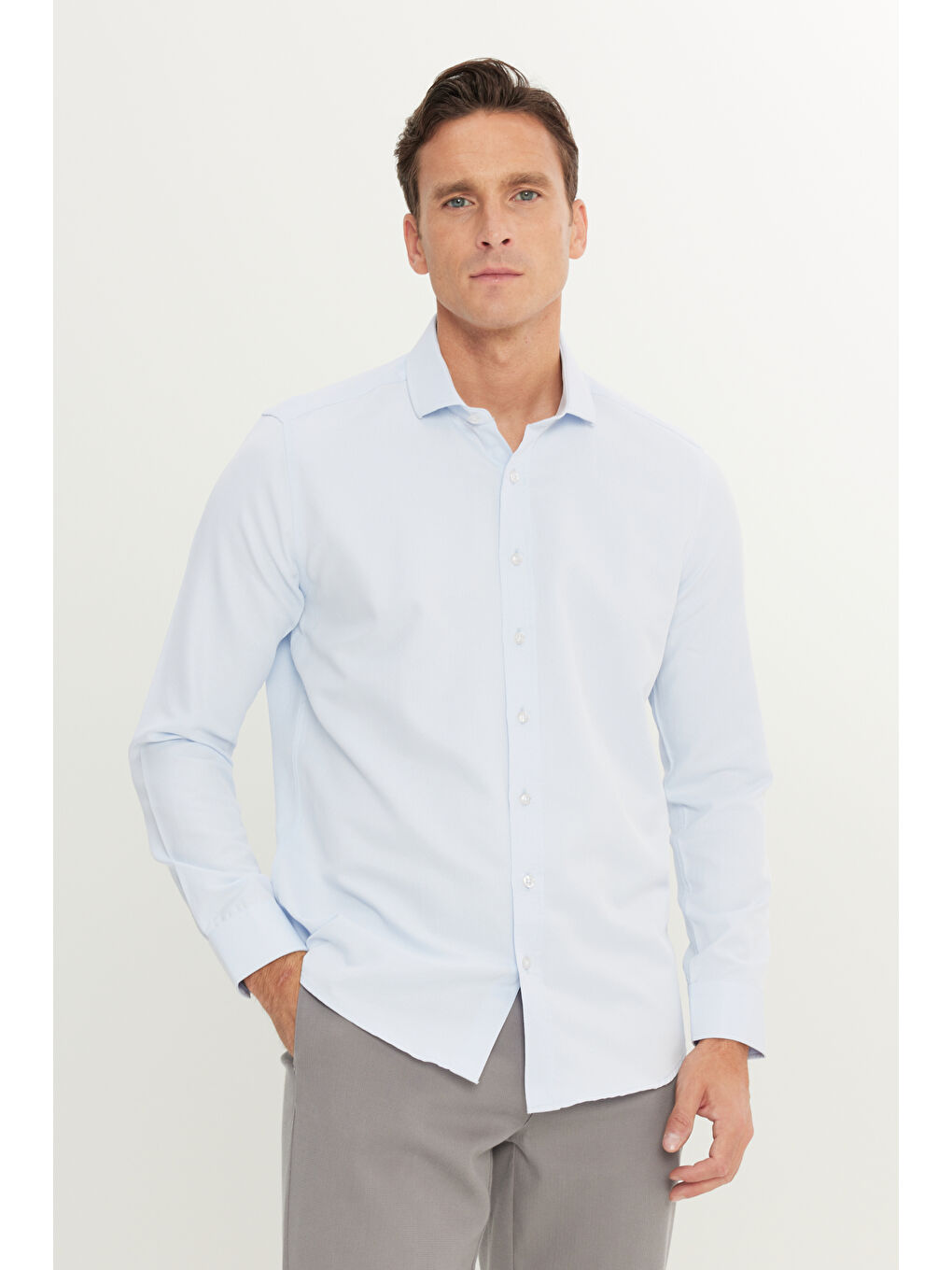 ۶۰٪ پنبه، ۴۰٪ پلیاستر، سفید-آبی، دابی، فیت باریک، یقه ایتالیایی کوچک، پیراهن دامادی، پیراهن کت و شلوار، آستین بلند، بدون جیب، اتوکشی آسان، پیراهن نخی دابی یقه ایتالیایی کوچک از مجموعه Altınyıldız، فیت باریک، برش باریک، سایز محصول: L، اطلاعات مدل: قد: ۱.۸۹ سانتیمتر، وزن: ۸۰ کیلوگرم، کد محصول: YD20242P2062K96.