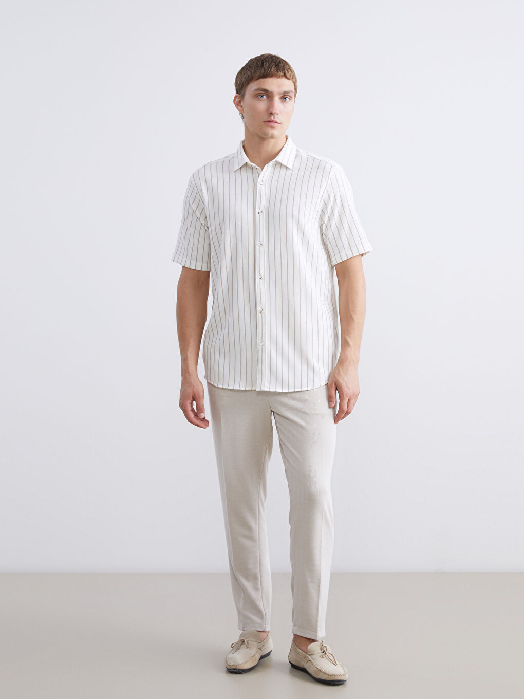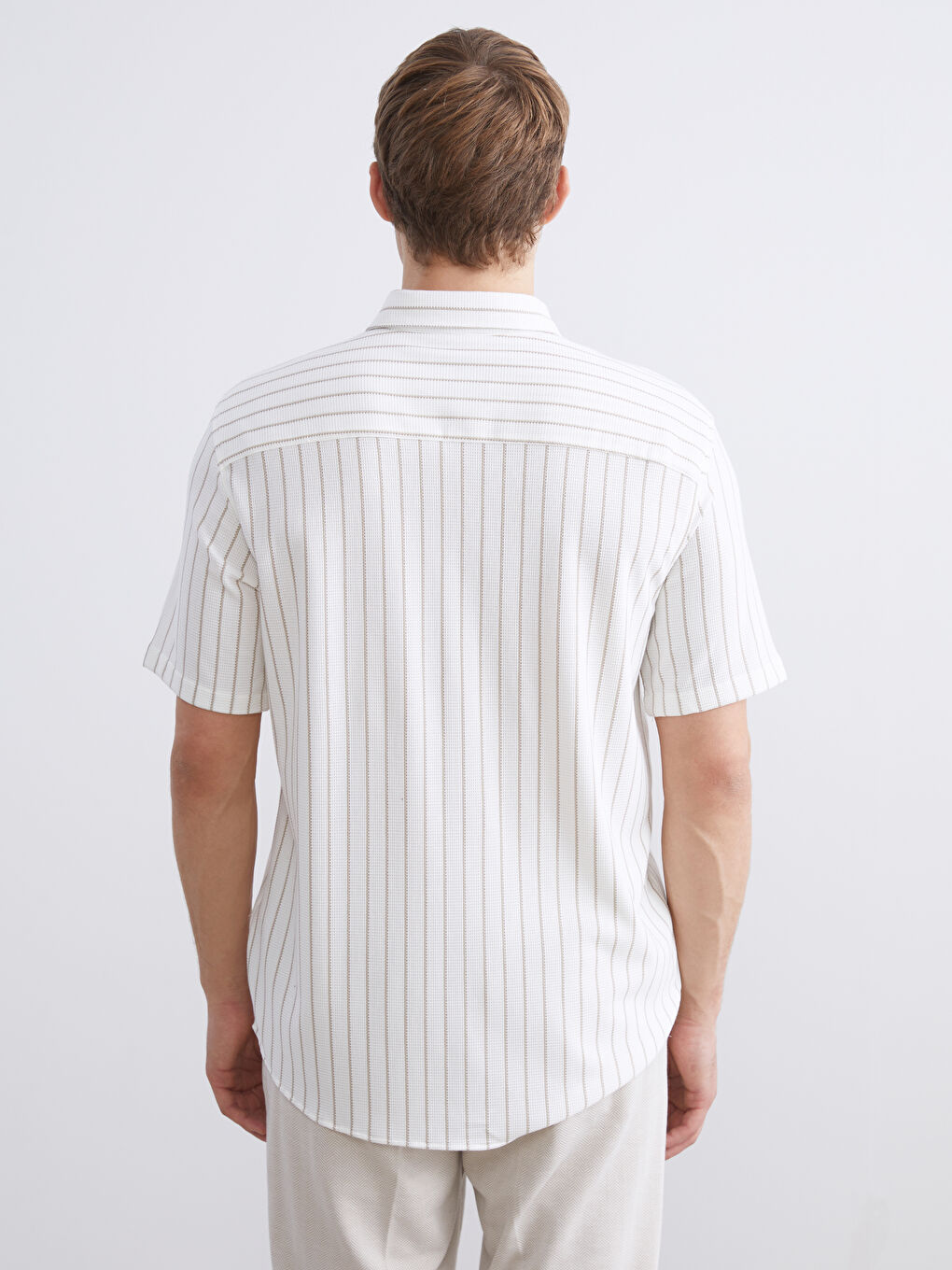 پیراهن مردانه راه راه آستین کوتاه Ecru Regular Fit