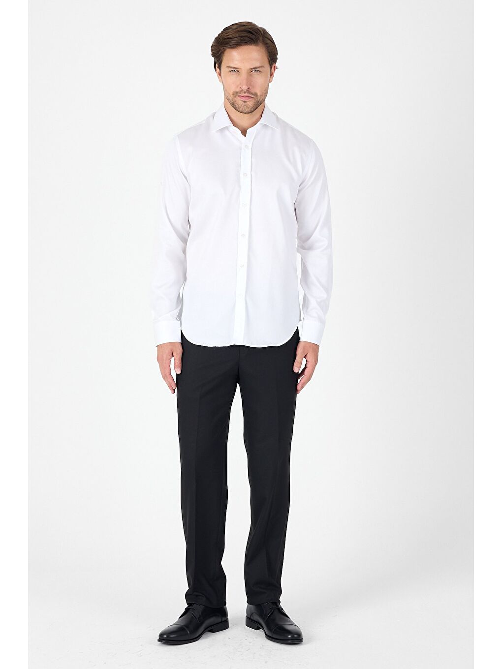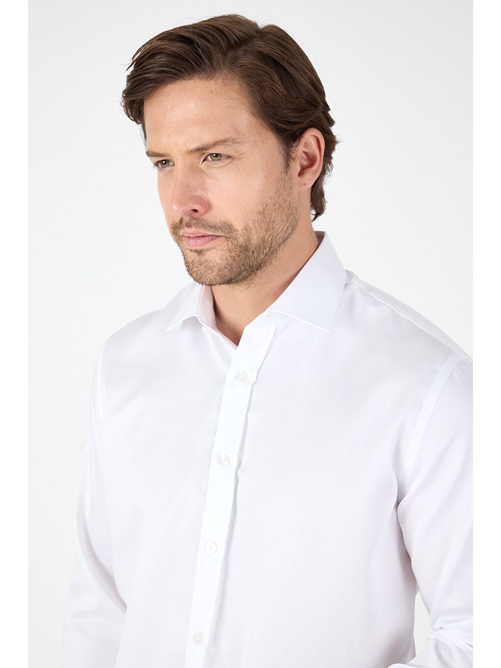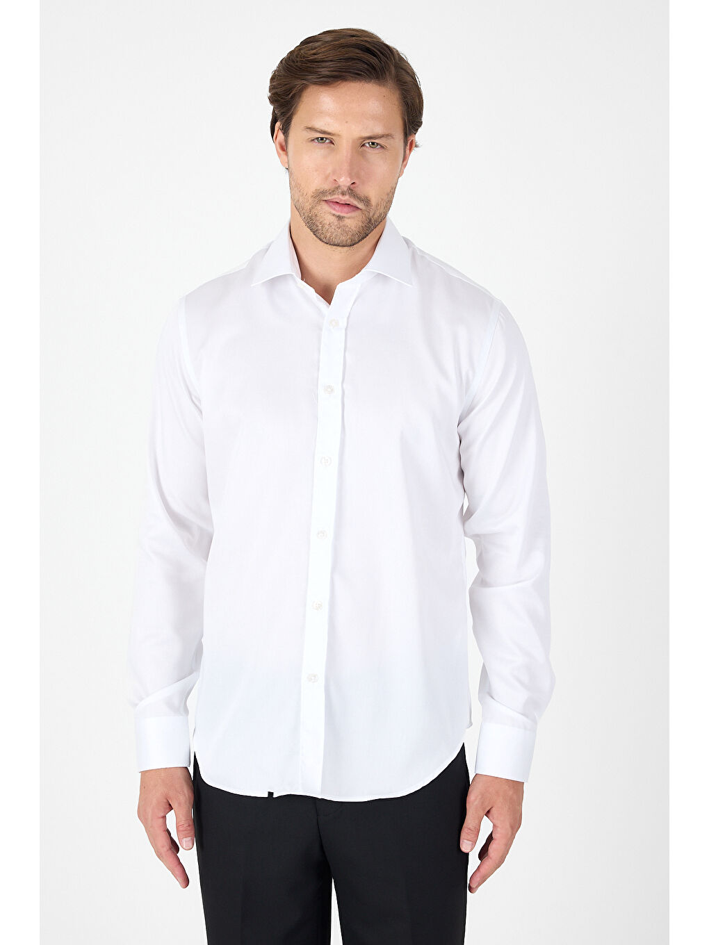 پیراهن سفید آستین بلند یقه ایتالیایی بدون جیب، بدون اتو، اسلیم فیت، ۱۰۰٪ پنبه، کد ۱۰۰۴۲۵۰۲۶۹