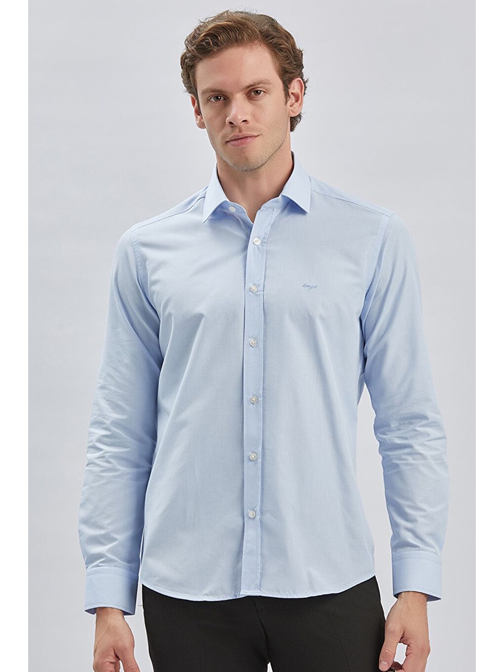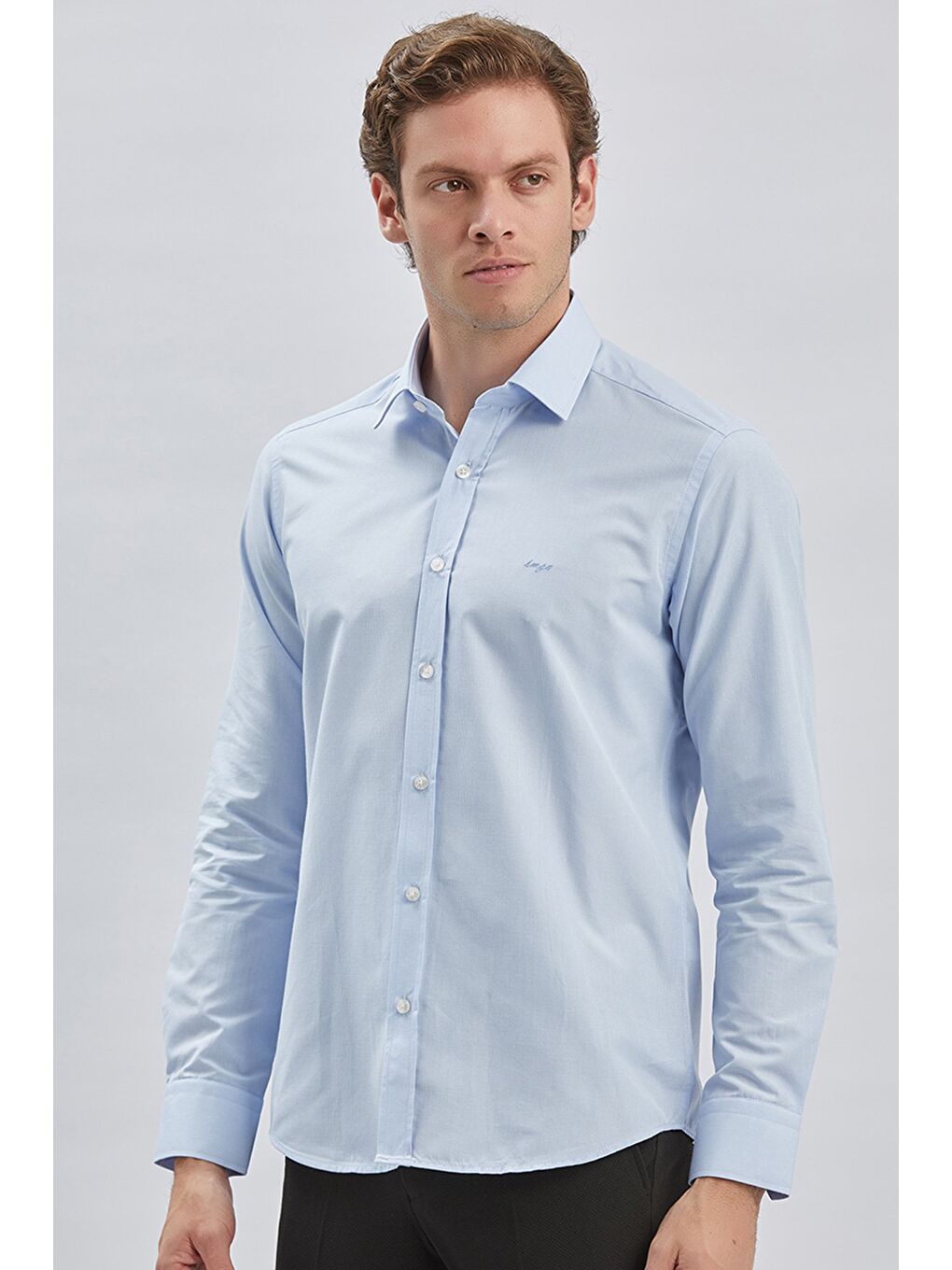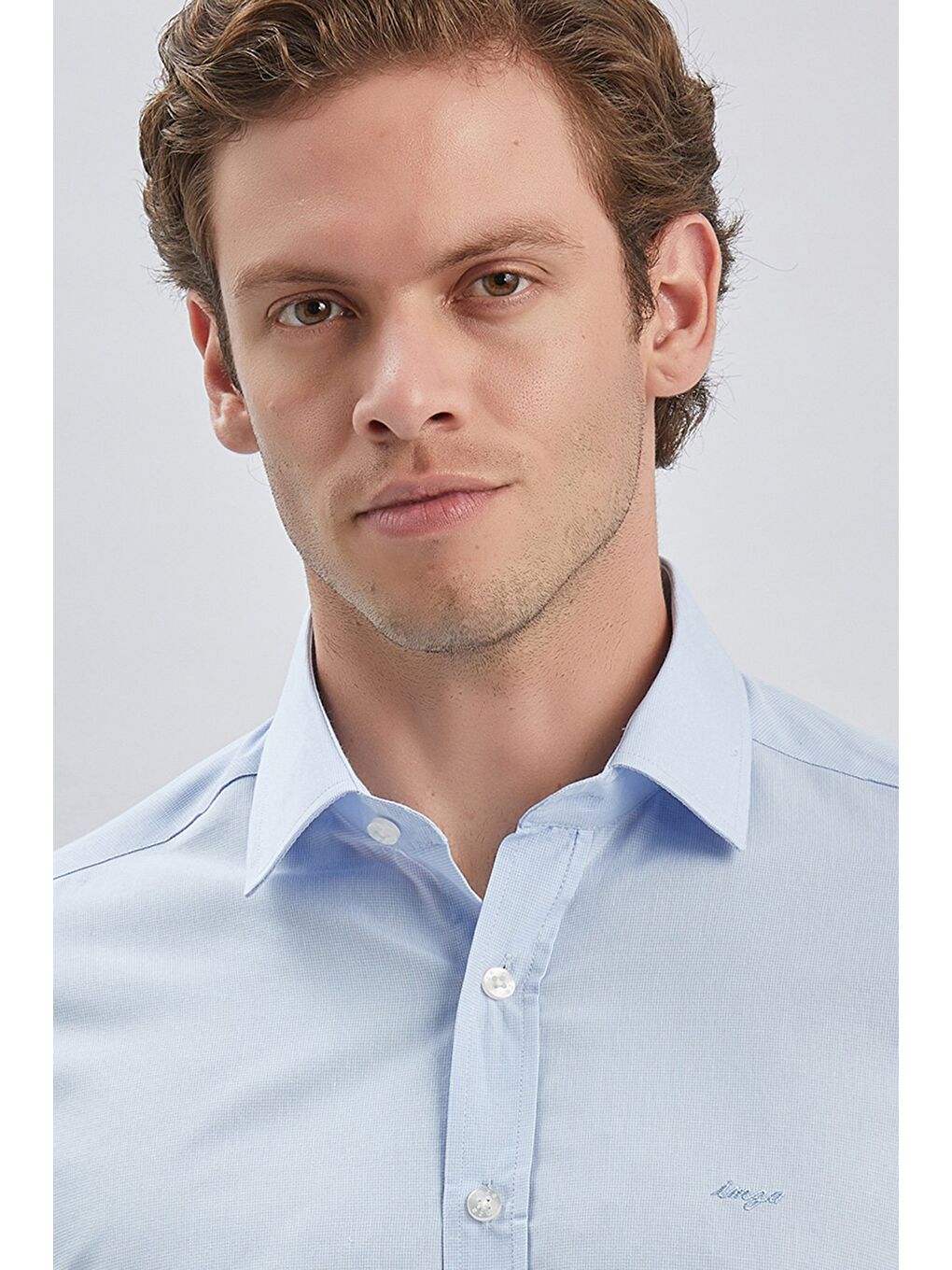 پیراهن نخی کلاسیک اسلیم فیت، یقه گرد ساده و بدون جیب، آستین بلند سرمهای، کد 1004240230