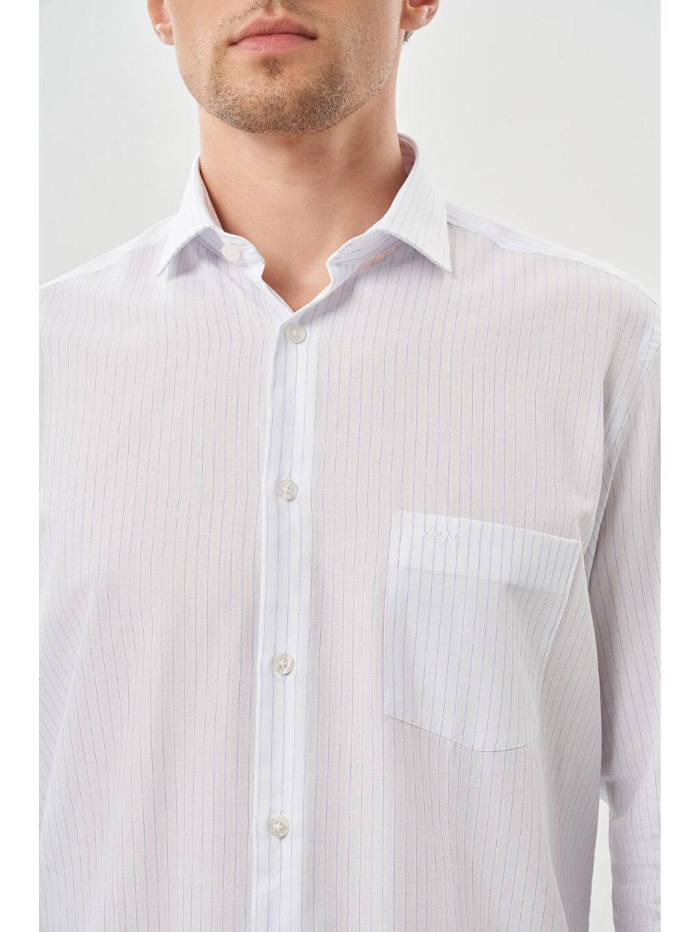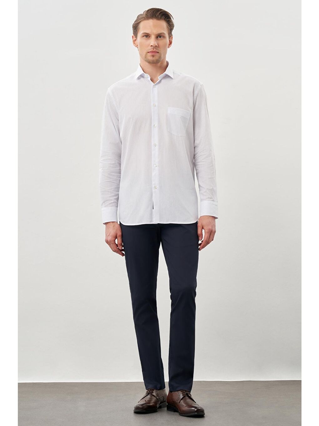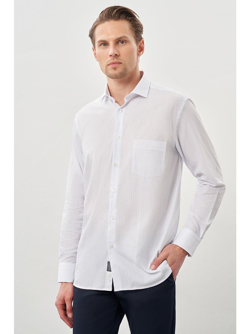 پیراهن آستین بلند سفید طرح دار یقه ای ایتالیایی و راحتی کلاسیک 1004245185