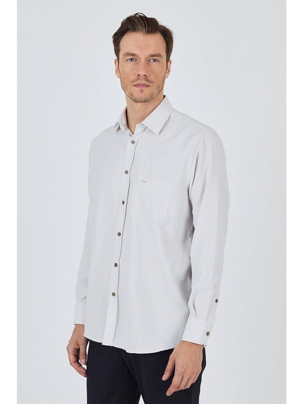 پیراهن آستین بلند بژ طرح دار یقه سفت و راحت و راحت کلاسیک 1004250174