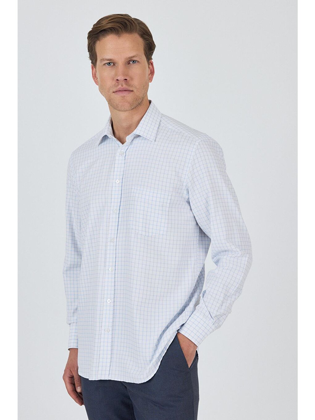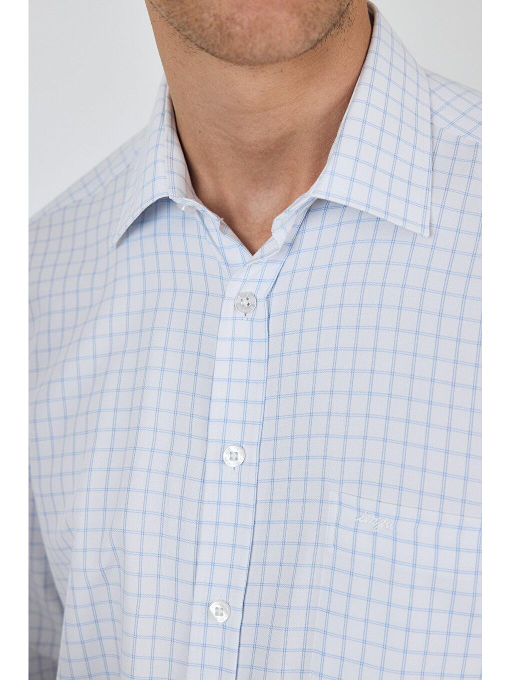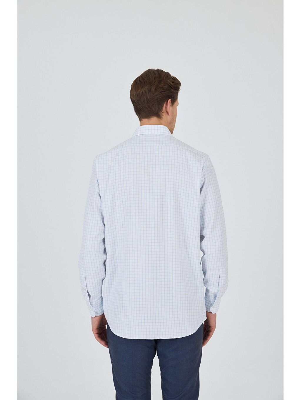 پیراهن چهارخانه آستین بلند سفید طرح چهارخانه یقه جامد، پیراهن راحتی کلاسیک نخی 1004250176