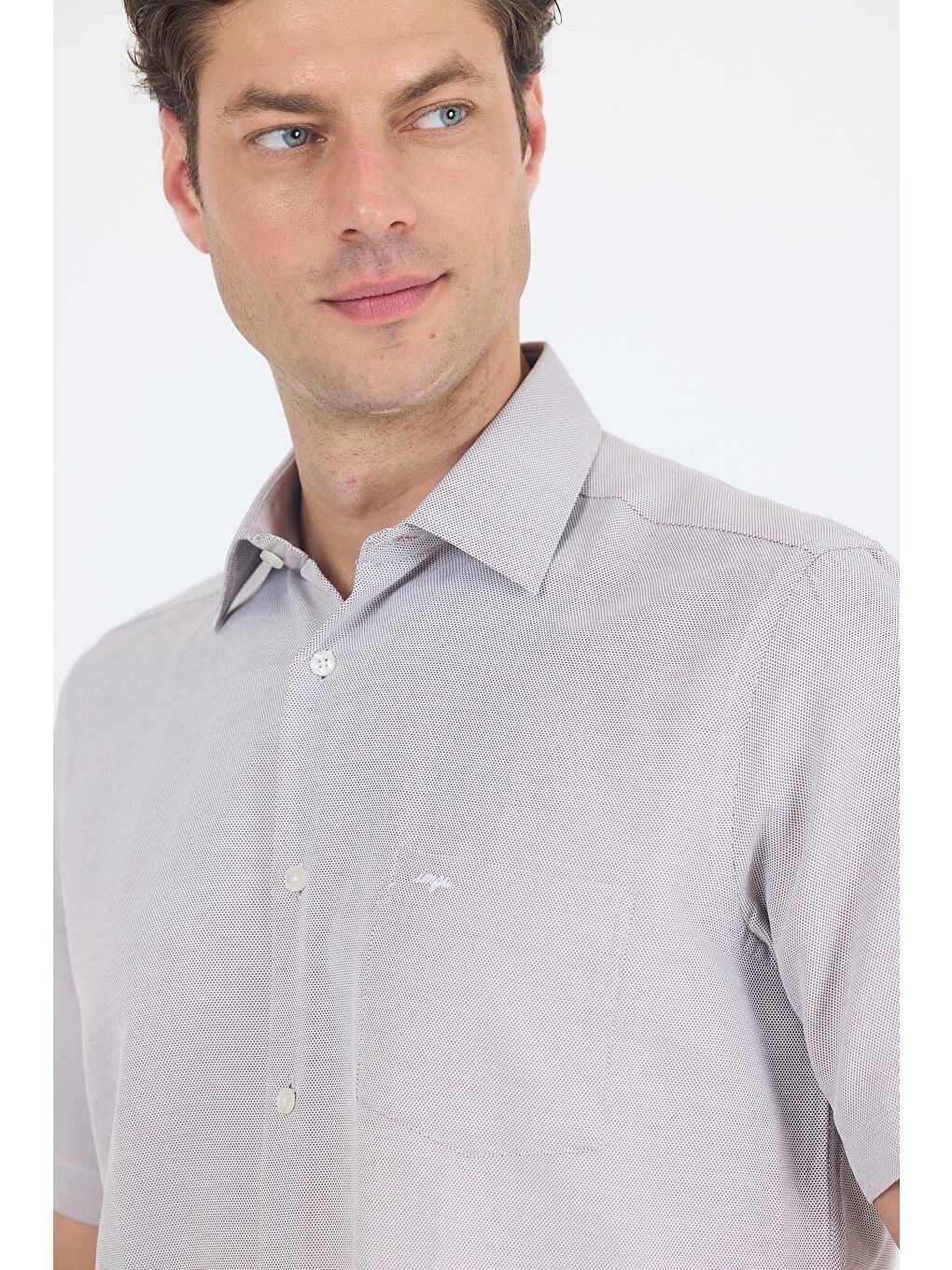 پیراهن آستین کوتاه یقه جامد قهوه ای تیره، آستین کوتاه، پیراهن CLS 1004250264