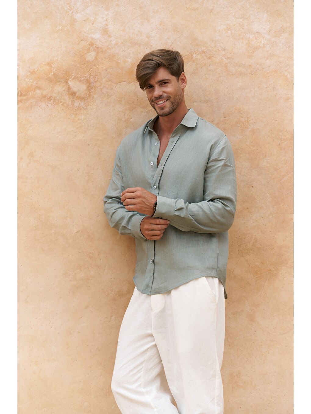 پیراهن کتان نعنایی مردانه سایز بزرگ آگنولا سبز
