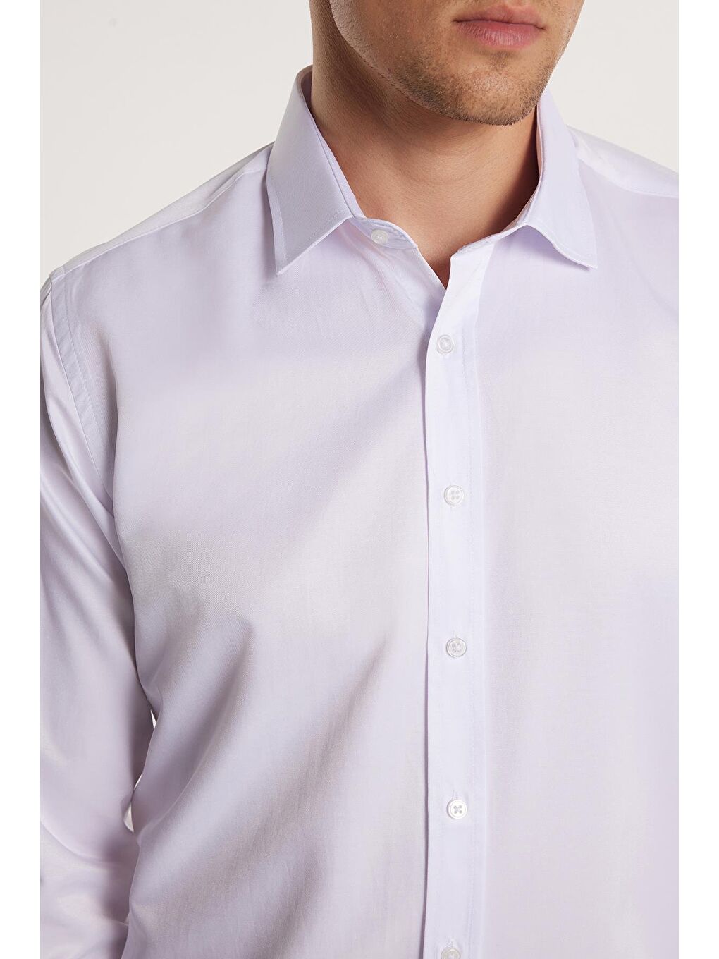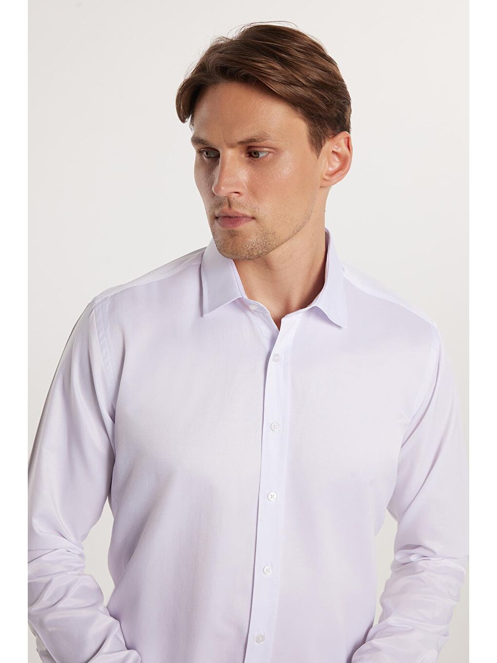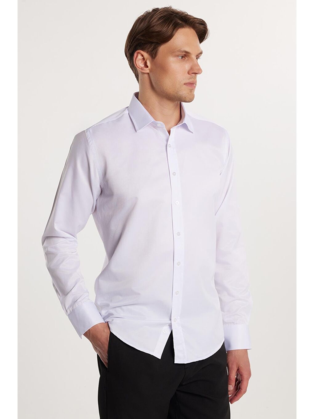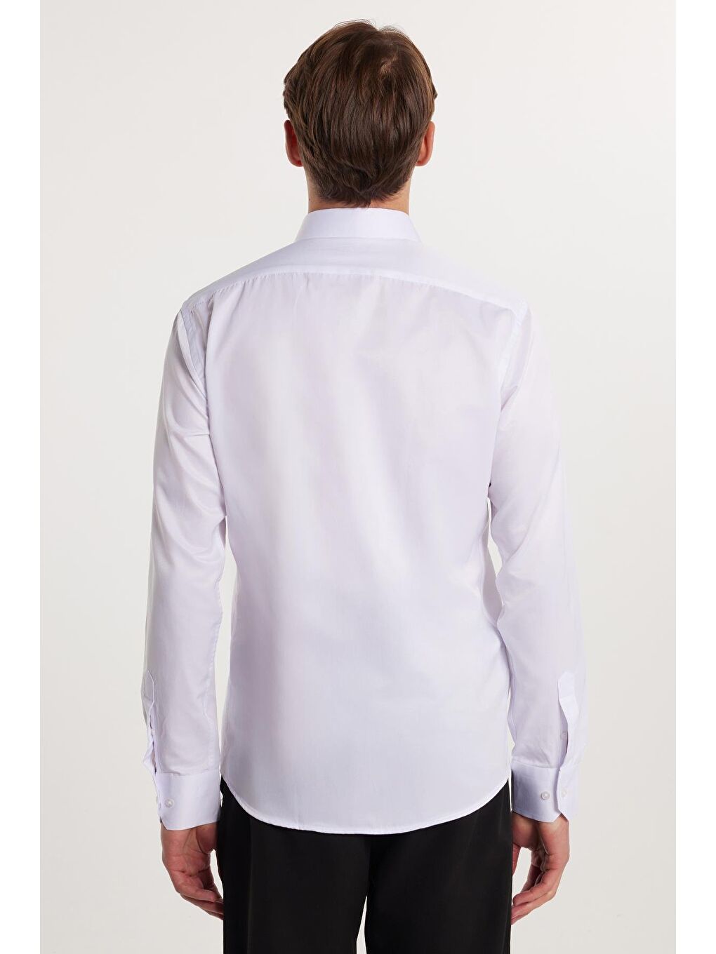 پیراهن مردانه مدرن اسلیم فیت ساده نخی سفید ساتن
