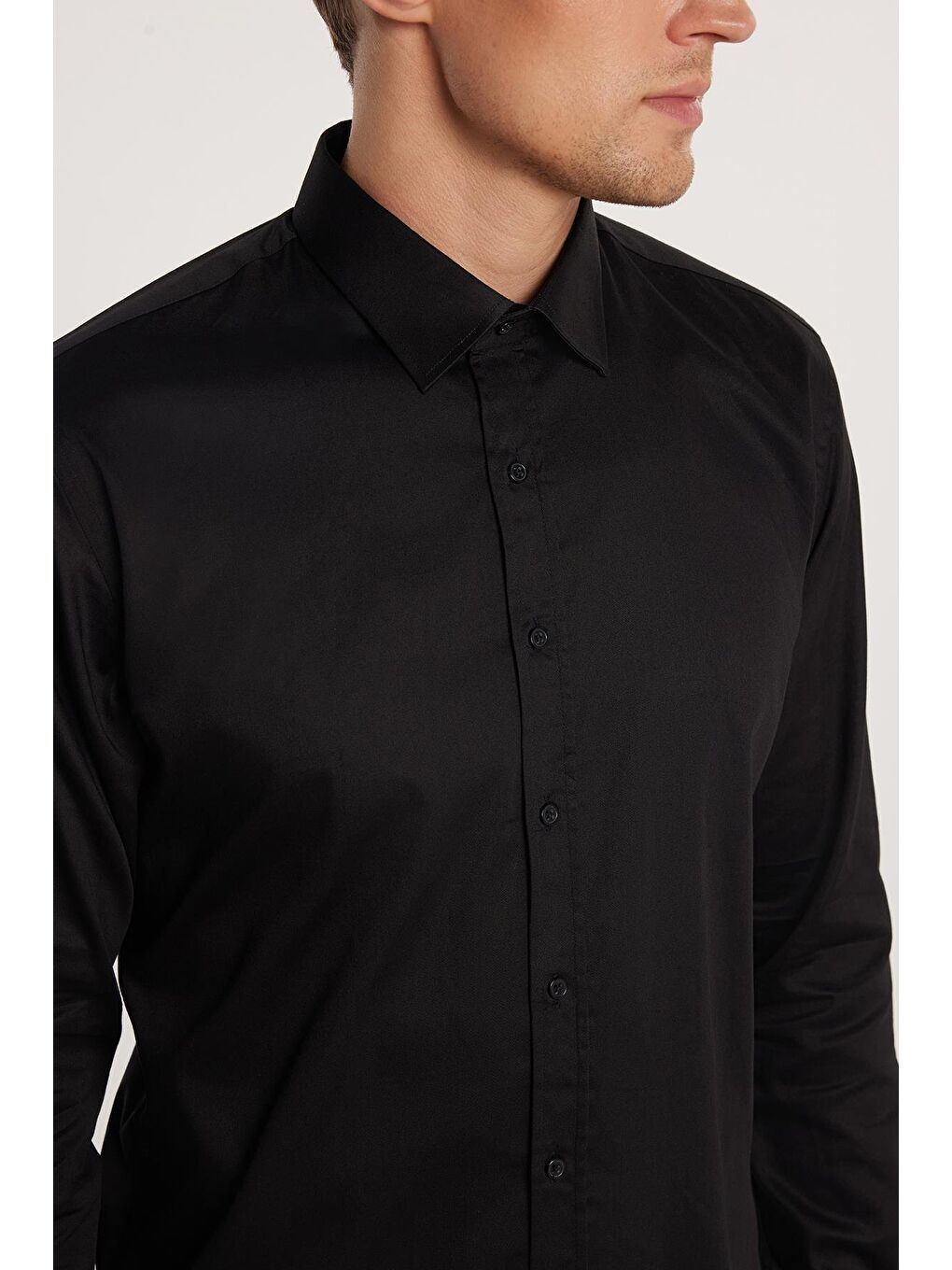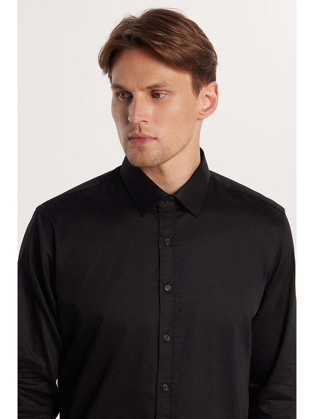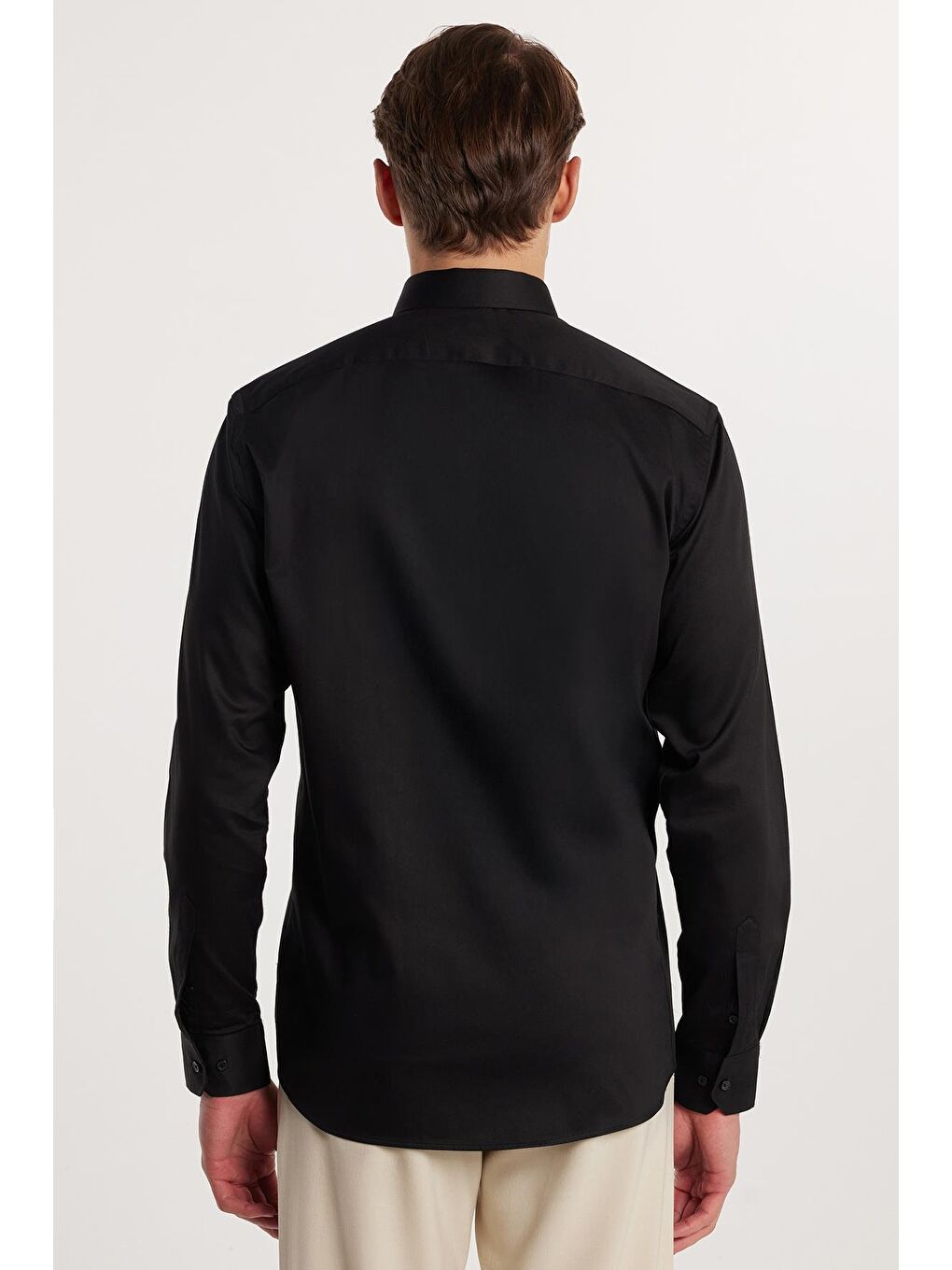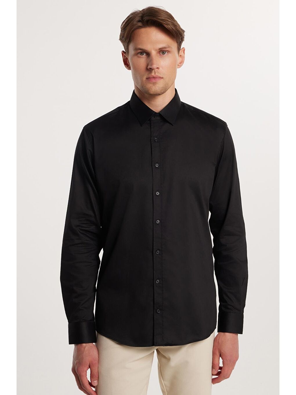 پیراهن مردانه مشکی مدرن اسلیم فیت آستین بلند نخی ساتن سری پریمیوم