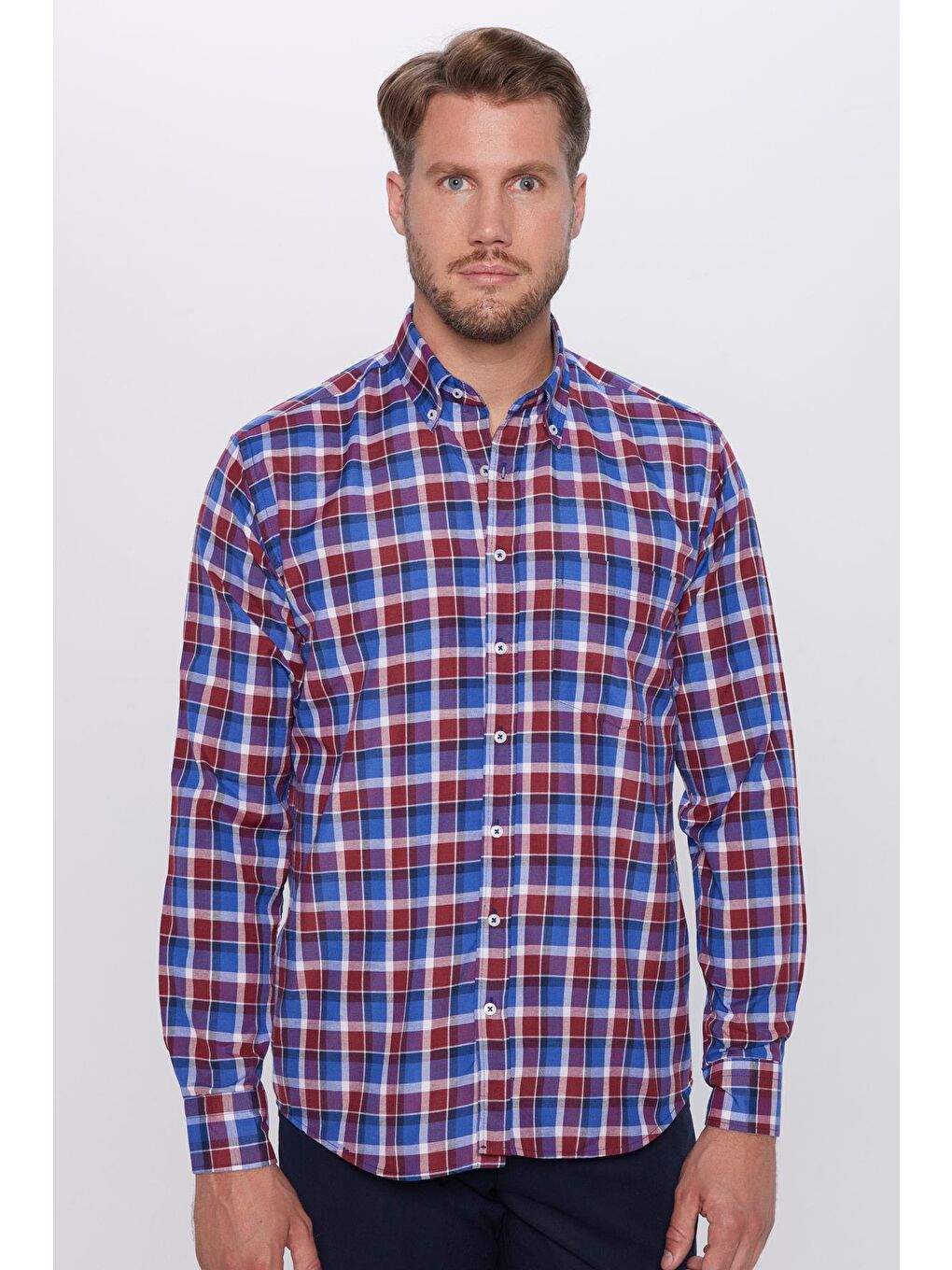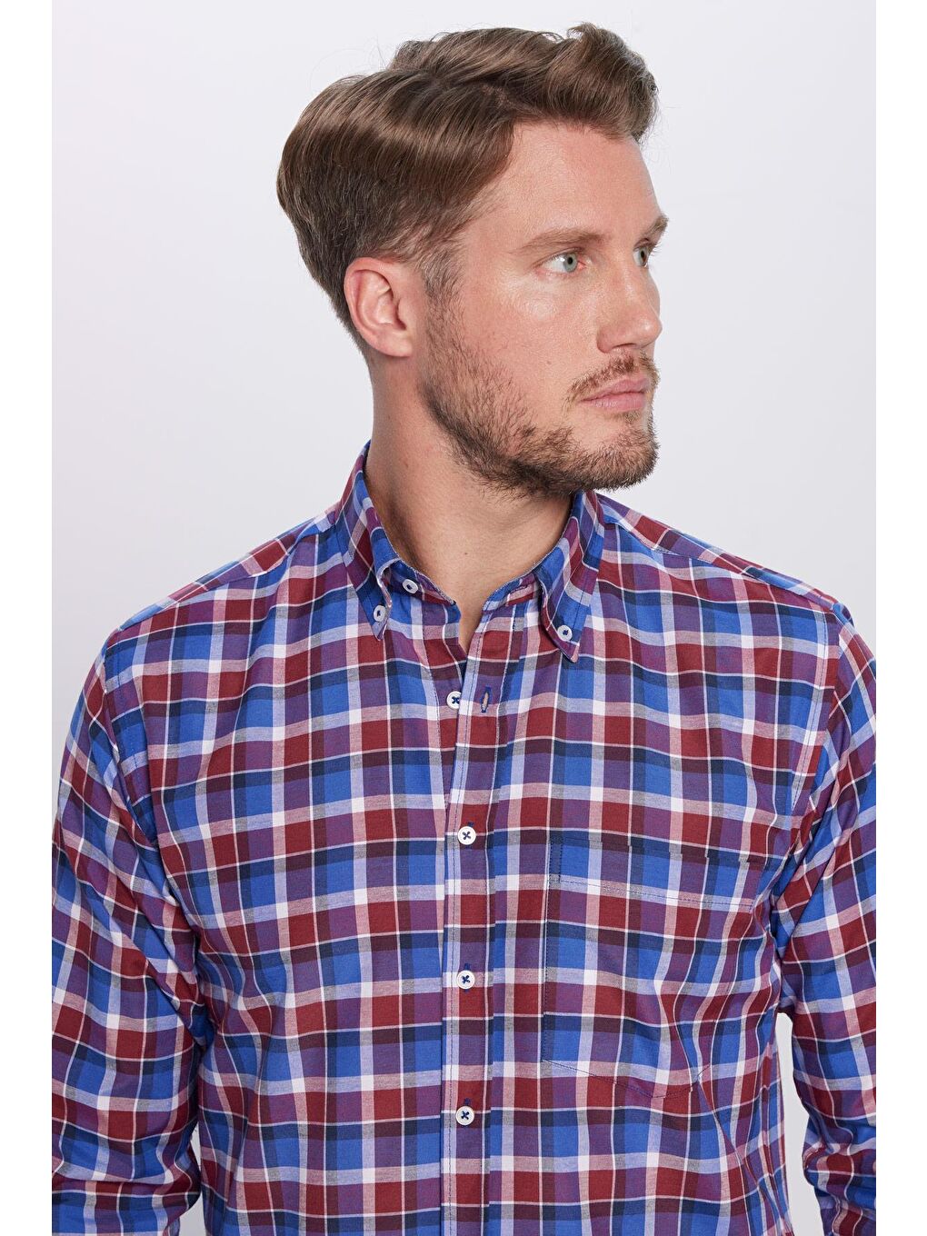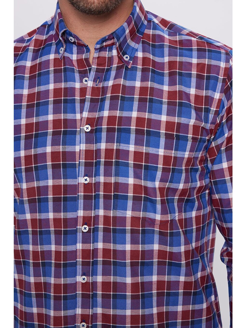 پیراهن مردانه ترکیبی، نخی تک جیب، یقه دکمهدار، طرح معمولی، برش کلاسیک