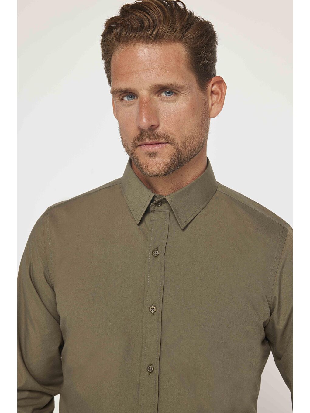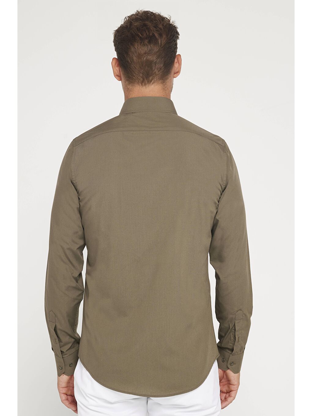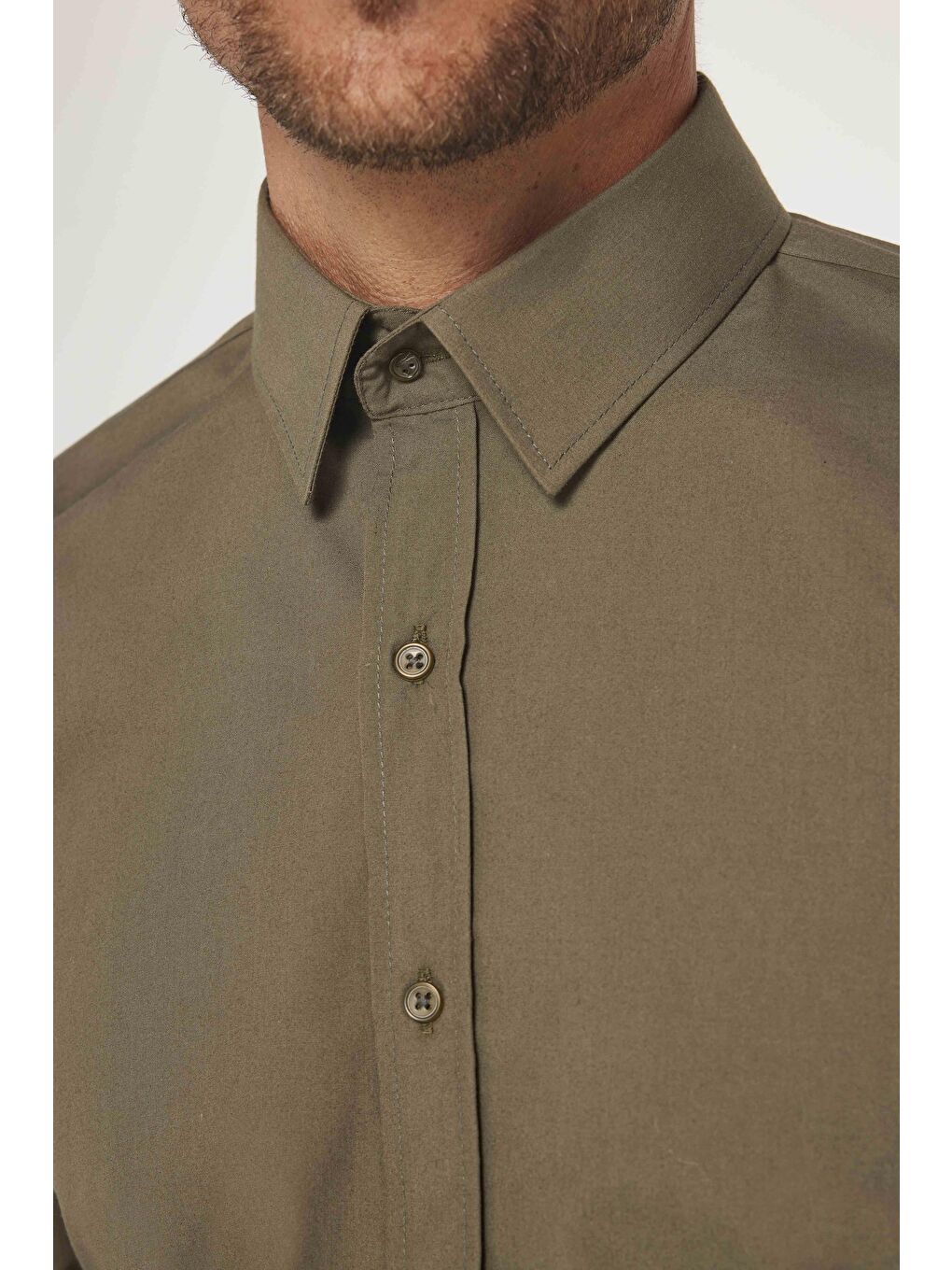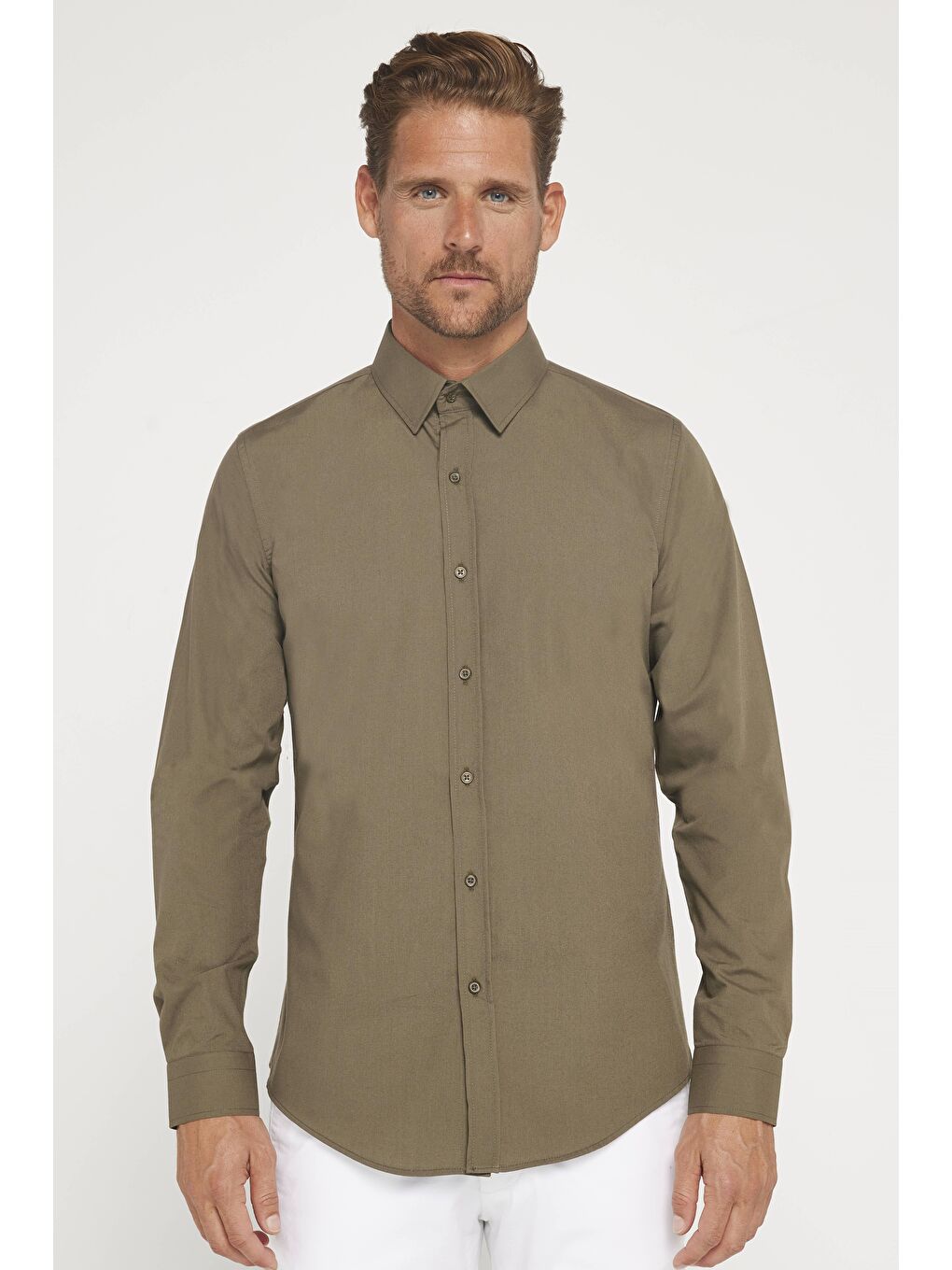پیراهن اسلیم فیت مردانه اسلیم کات تری پارچه نخی پارچه ای آهنی خاکی