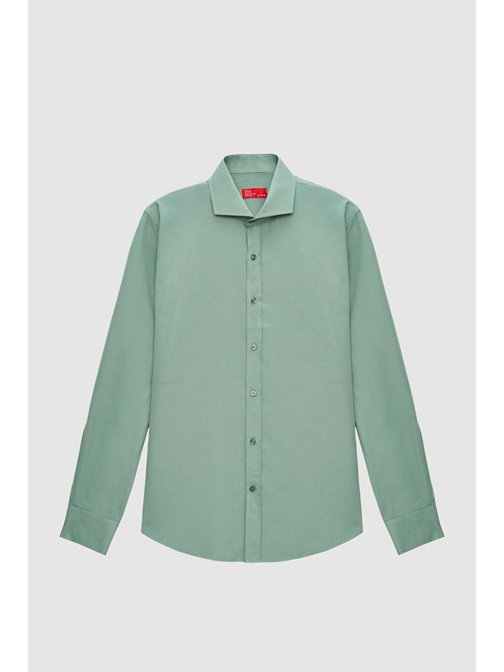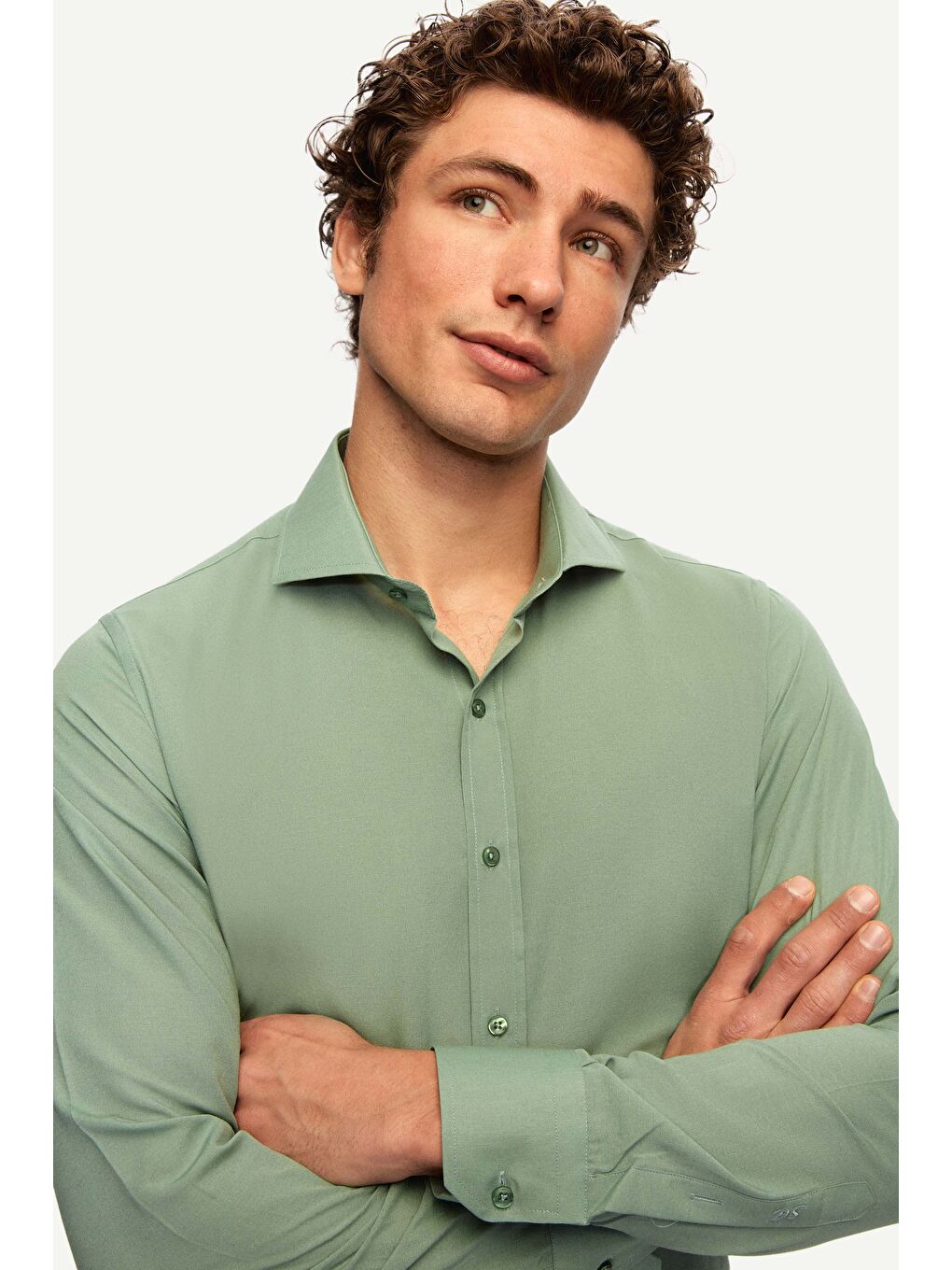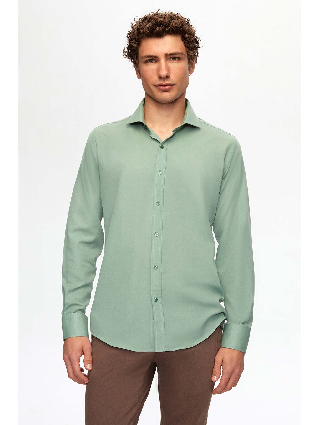 پیراهن آستین بلند، یقه ایتالیایی سبز اسلیم فیت، کراوات کلاسیک، قابل اتو کردن آسان