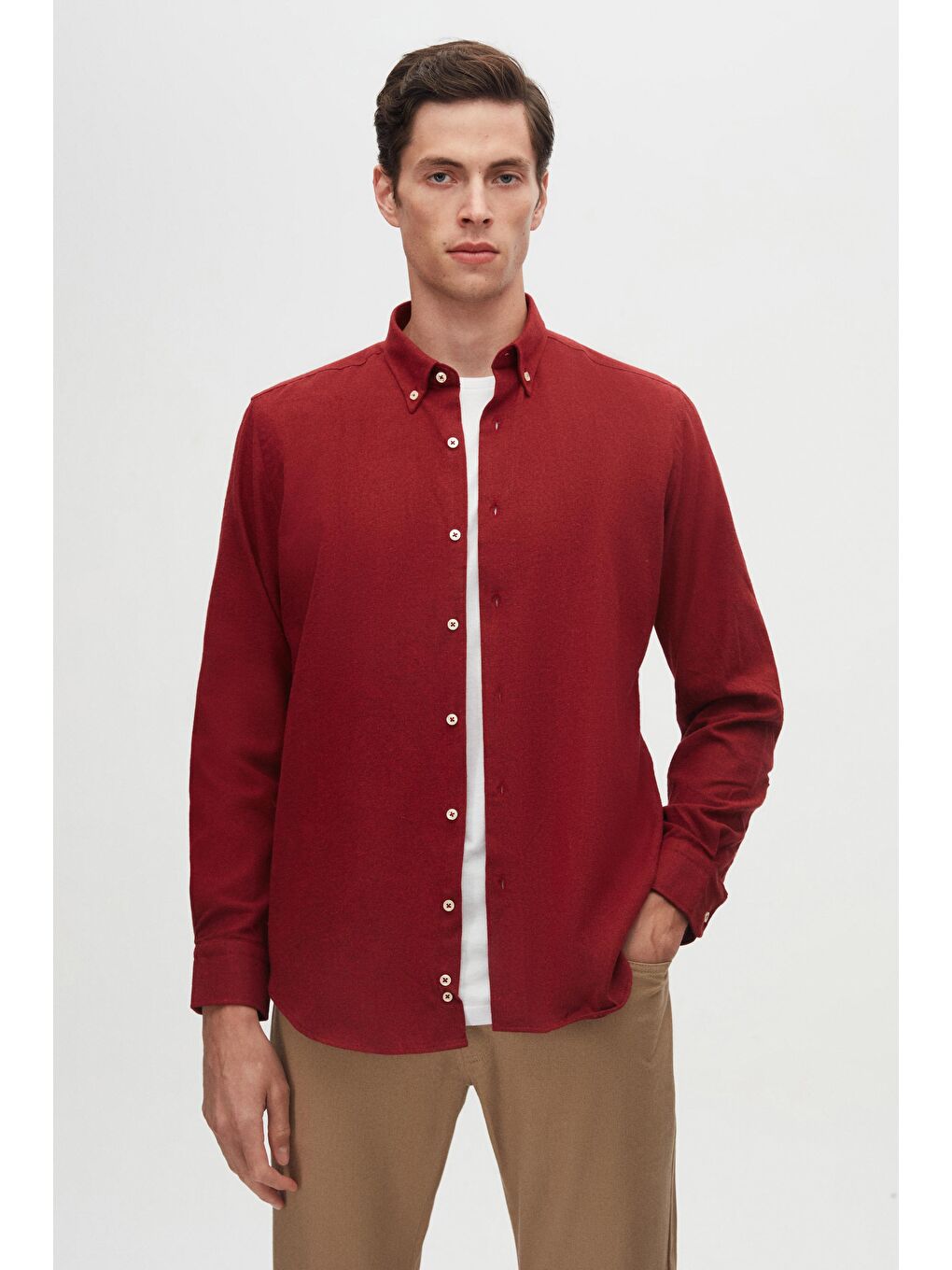 پیراهن فلانل زمستانی ساده زرشکی رنگ فیت معمولی